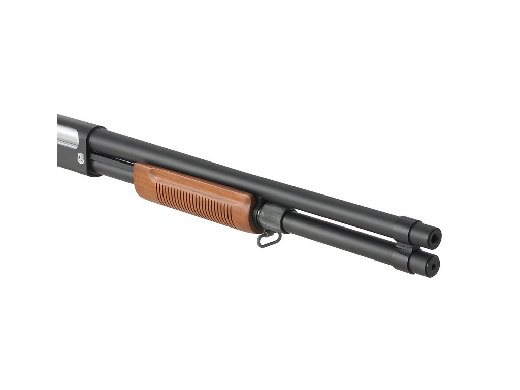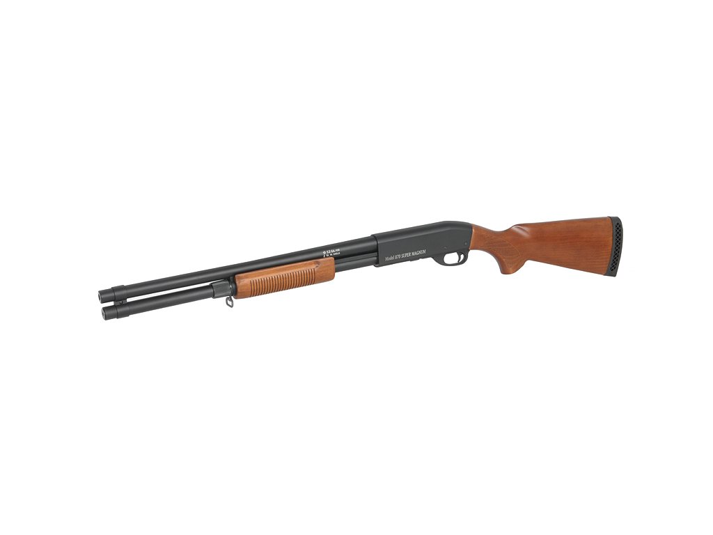 Airsoftová manuální americká brokovnice typu pump-action používané vojenskými a policejními jednotkami po celém světě a civilisty k lovu a sebeobraně. Pažba a přední rukojeť jsou vyrobeny z vysoce kvalitního přírodního dřeva a ostatní prvky, jako je rám zbraně s hlavní, posuvným mechanismem a spoušťovým mechanismem, jsou vyrobeny ze slitin kovů.