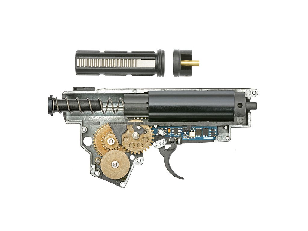 Model STAEG113 je vybaven robustním gearboxem V3 s pohodlným systémem rychlé výměny pružiny. S&T věnuje zvláštní pozornost kvalitě komponent použitých v konstrukci, včetně zesílených ocelových ozubených kol 18:1 uložených na 8mm ložiskách. Vzduchotechnika je poháněna sadou pístu se všemi ocelovými zuby, válcem a plochou hlavou pístu a válce.Pro zlepšení výkonu je airsoftová karabina vybavena hop-up komorou kompatibilní s TM, která hladce spolupracuje s hlavní 6,02 mm, což zajišťuje přesnost a preciznost při každém výstřelu. Tato pečlivá pozornost věnovaná gearboxu a vnitřním prvkům odráží závazek společnosti S&T poskytovat vysoce kvalitní a spolehlivý zážitek z airsoftu pro uživatele modelu STAEG113.