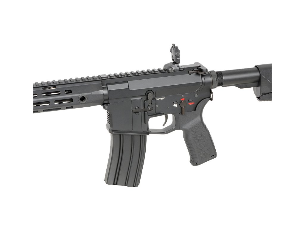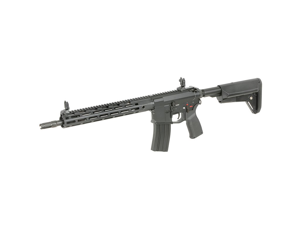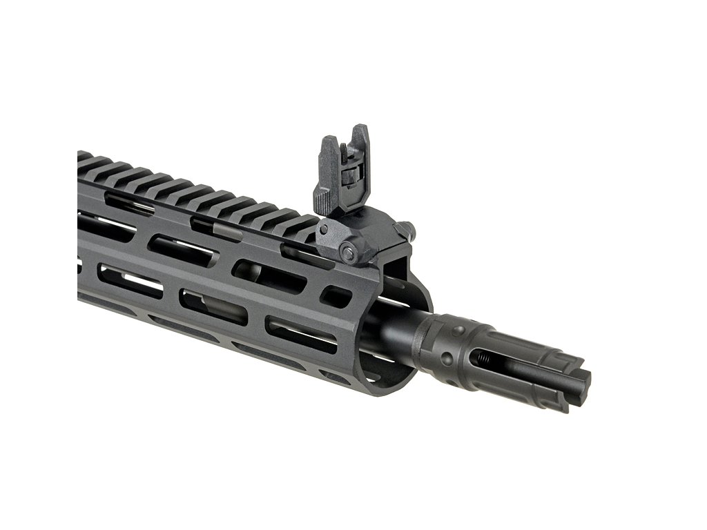 Nastavitelná 6polohová pažba umožňuje přizpůsobení délky a zároveň poskytuje prostor pro akumulátor. Polymerová pistolová rukojeť nabízí jistý úchop a komfort při střelbě. Atrapa tlumiče plamene s levotočivým závitem 14 mm umožňuje montáž kompatibilních tlumičů.