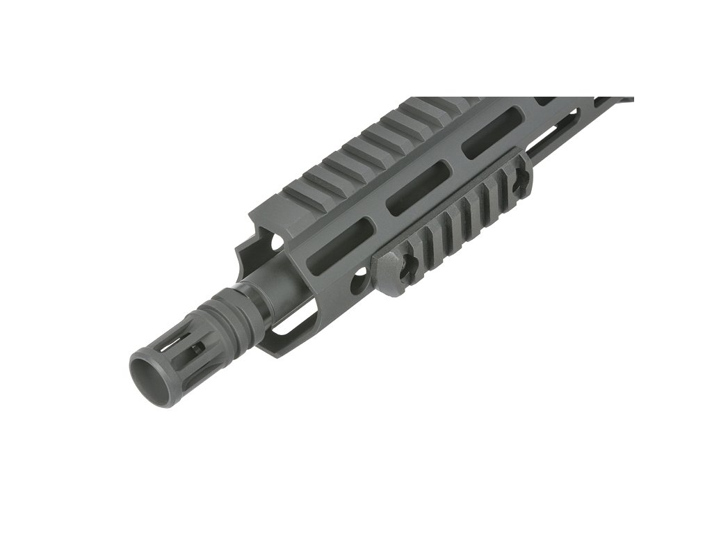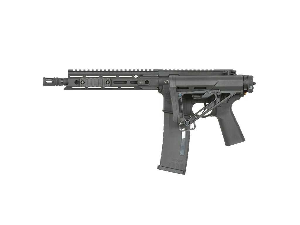 Lehká, licencovaná lišta MFR 9.0 M-LOK umožňuje snadné upevnění různých doplňků, jako jsou svítilny, rukojeti nebo jiné příslušenství, což z této zbraně činí vynikající volbu pro dynamické hry v podmínkách CQB (Close Quarters Battle). Navíc pažba APS RS-3 s funkcí skládání na stranu umožňuje snadnější pohyb v úzkých prostorech a usnadňuje transport zbraně, čímž je praktičtější a pohodlnější pro skladování.