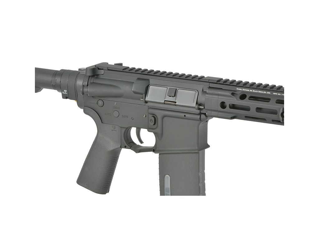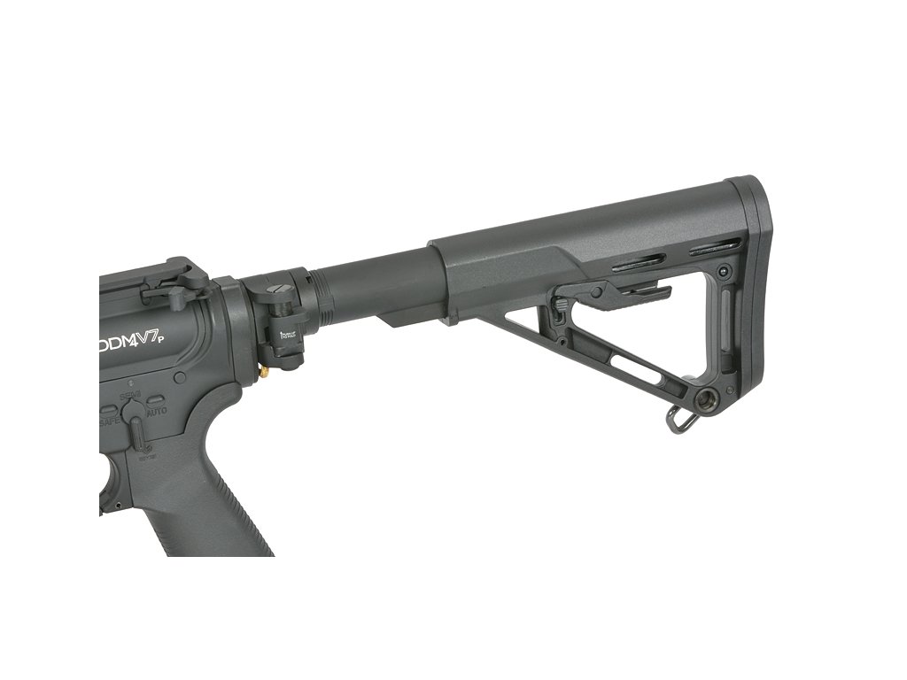 Daniel Defense DDM4 V7 je licencovaná airsoftová zbraň ve stylu AR-15, vyvinutá ve spolupráci s EMG. Vybavena Mosfetem, předpažbím M-LOK a sklopnou pažbou do strany, nabízí výjimečné spojení preciznosti, manévrovatelnosti a spolehlivosti. Stvořena pro náročné airsoftové hráče a milovníky replik.