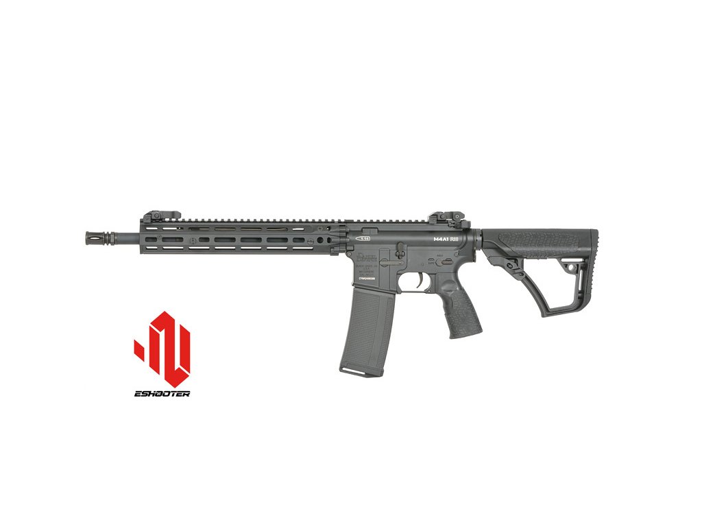 Airsoftová elektrická zbraň, replika Daniel Defense M4A1 RIII, úsťová rychlost až 400 FPS, váha 2880 g, délka 79 cm, zásobník na 230 BB