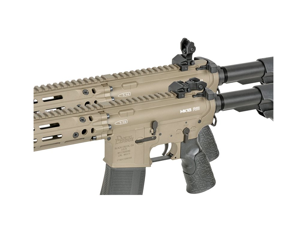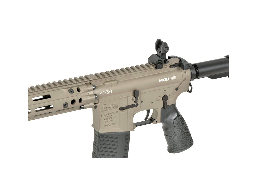 Airsoftová zbraň Daniel Defense M4A1 RIII, licencovanou společností EMG a vyrobenou firmou CYMA, která kombinuje autentické označení a nejvyšší kvalitu provedení. Vybavená inovativním lišty RIS III, pokročilou elektronikou Eshooter ETU V2, kadencí 25 kuliček za sekundu a zesílenými díly, zajišťuje spolehlivost, přesnost a vynikající výkon za všech podmínek.