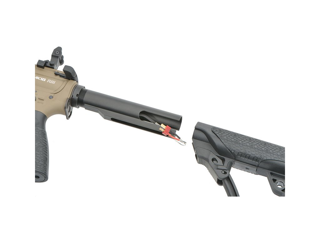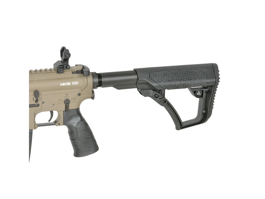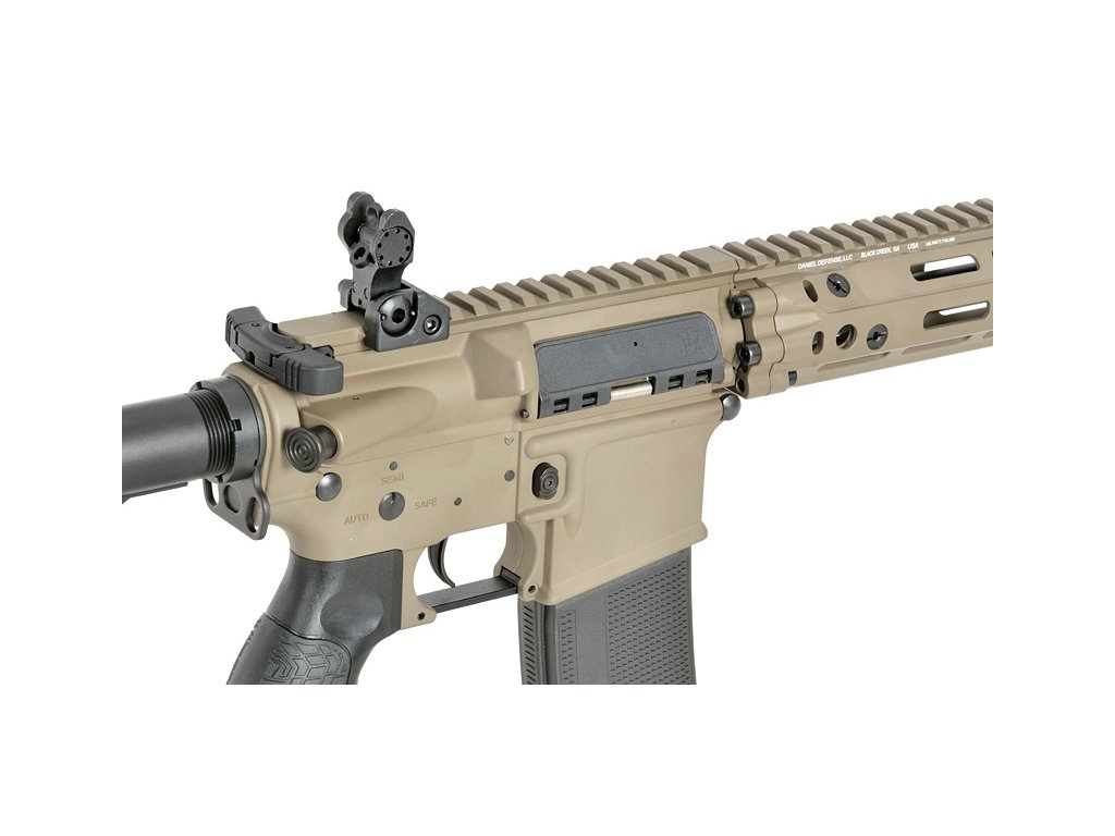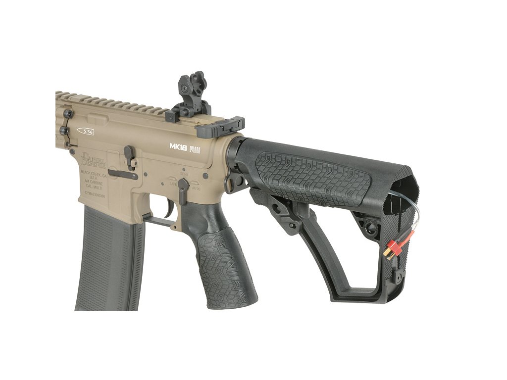 Tato puška, navržená s důrazem na detail, má také 6polohovou pažbu Daniel Defense s rychle odnímatelným krytem, který umožňuje snadný přístup k prostoru pro baterii. Tvarovaná pistolová rukojeť s agresivní texturou poskytuje ergonomické pohodlí a kontrolu během intenzivních bojů.