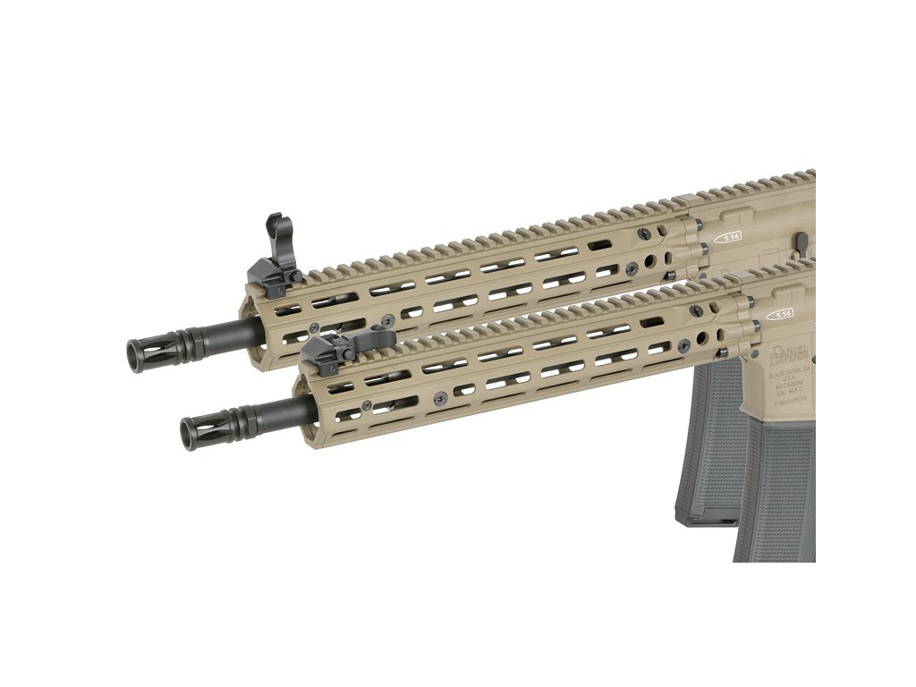 Představujeme AEG EMG Daniel Defense M4A1 RIII 14,5palcovou ve verzi barvy FDE vyrobenou firmou Cyma. Tato airsoftová zbraň je plně licencována společností EMG a prezentuje autentické označení Daniel Defense pro věrné zobrazení ostré zbraně.