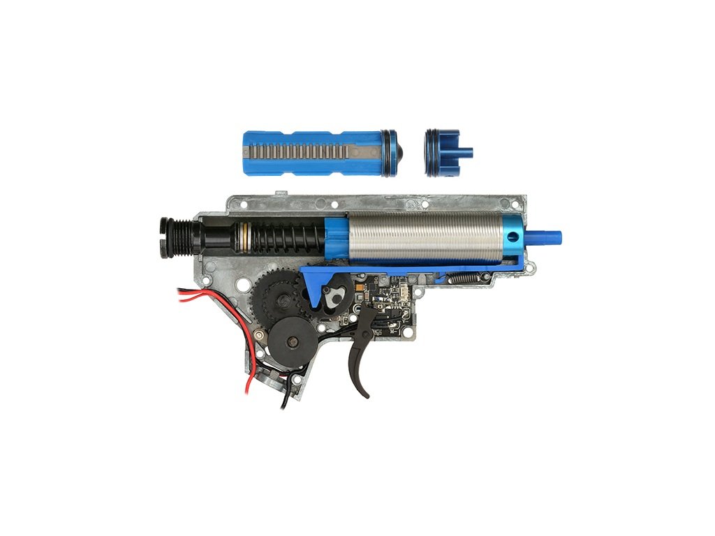 Pro dosažení takových výsledků byla replika vybavena řadou zesílených prvků, které zaručují nejen vysoký výkon, ale také bezkonkurenční odolnost. Srdcem repliky je kostra gearboxu V2 s funkcí rychlé výměny pružiny. Píst se všemi ocelovými zuby, ocelová kola s převodovým poměrem 13:1, uložená na 8mm kuličkových a kluzných ložiskách, zajišťují hladký a spolehlivý chod vnitřního mechanismu.