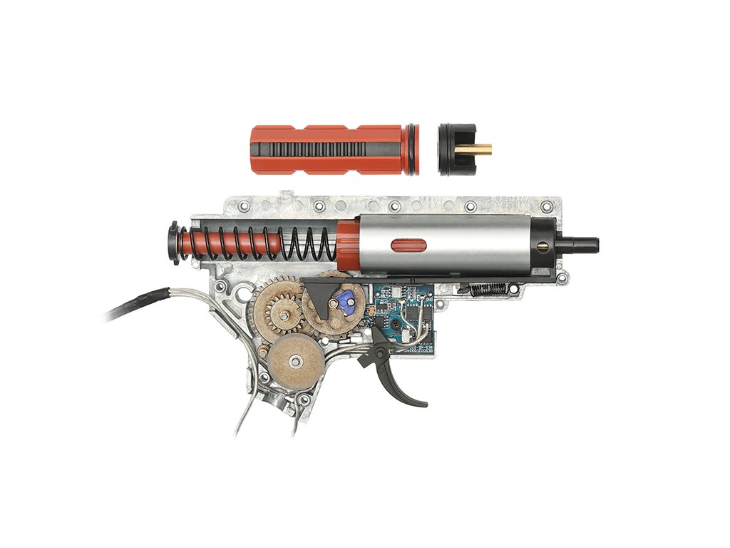 Tělo vyrobené z polymeru vyztuženého nylonovými vlákny zajišťuje nízkou hmotnost a odolnost proti poškození, zatímco ocelové a kovové detaily zvyšují celkovou odolnost konstrukce a podtrhují její realistický vzhled. Vnitřní díly vycházejí ze zesíleného gearboxu V2 třetí generace, který je vybaven systémem rychlé výměny pružiny a elektronickou jednotkou ETU. Ten zajišťuje okamžitou reakci na spoušť, lepší správu napájení a nižší opotřebení dílů.
