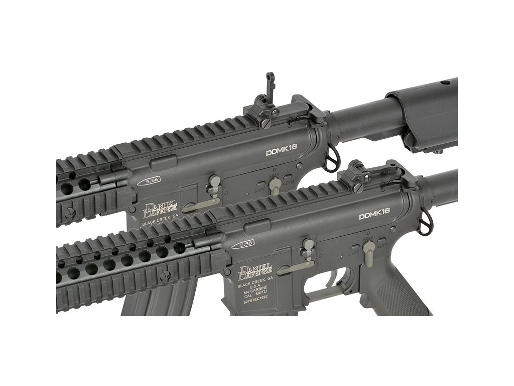 Airsoftová zbraň DD MK18 od společnosti EMG byla vyrobena na základě oficiální licence americké značky Daniel Defense, jednoho z předních výrobců palných zbraní. Model nese plnohodnotná, laserem gravírovaná licenční označení, která věrně napodobují originál – a to esteticky. Nejde jen o herní zbraň, ale o autentický předmět pro milovníky vojenské preciznosti a detailů.