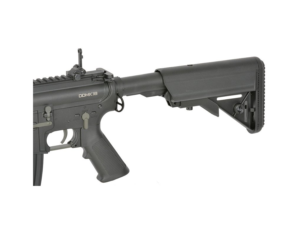 Model DD MK18 Sportline byl navržen jako kompaktní zbraň typu AR-15, vhodná jak pro rychlé střety na krátkou vzdálenost, tak pro střední vzdálenosti. Polymerové tělo vyztužené nylonovým vláknem nabízí výborný poměr hmotnosti a odolnosti, což zajišťuje komfort při používání a snadnou ovladatelnost v různých podmínkách.