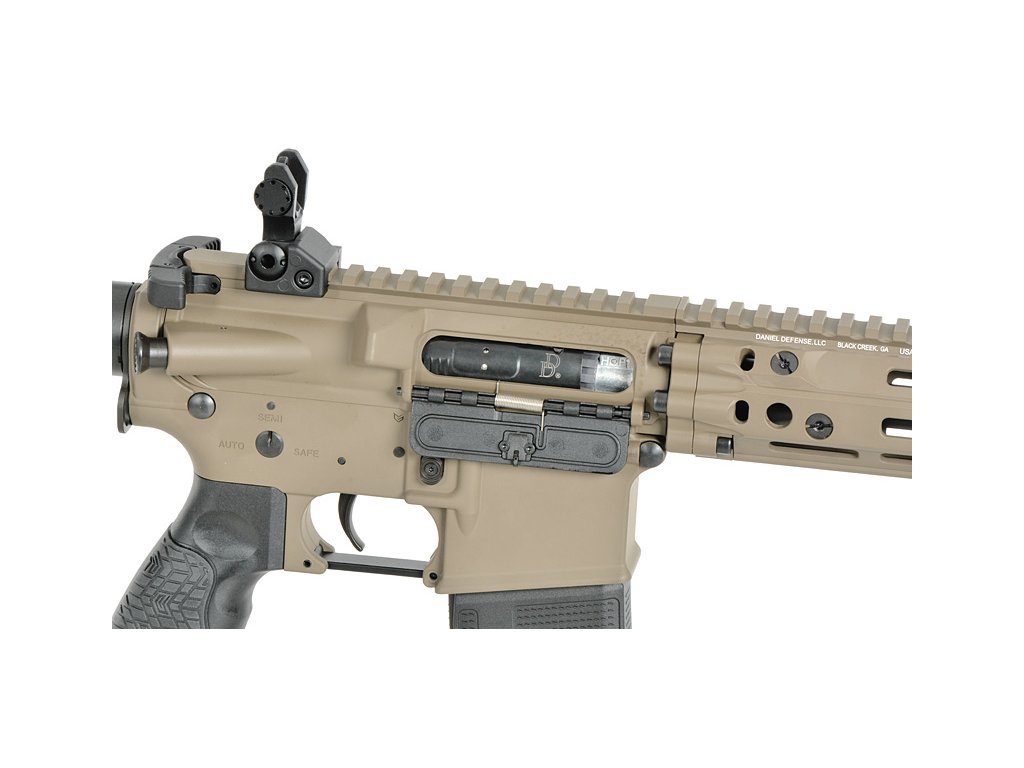Precizní provedení zbraně je patrné i v detailech, jako je nastavitelná 6-ti polohová pažba a profilovaná pistolová rukojeť Daniel Defense, které zajišťují dokonalou ergonomii a jistotu úchopu během dynamické hry.