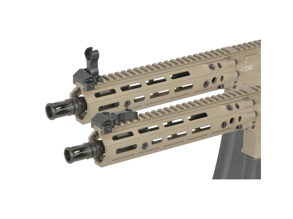Představujeme airsoftovou zbraň ze série EMG Daniel Defense MK18 RIII 10.3" v barvě FDE, vyrobenou společností CYMA. Tato plně licencovaná zbraň s autentickým označením Daniel Defense věrně kopíruje svou ostrou předlohu.
