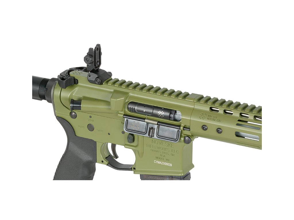 Airsoftová zbraň je vyrobena z kovu, což zaručuje vysokou odolnost i při intenzivním používání. Předpažbí Noveske NSR 13.7" s montážním systémem M-LOK umožňuje snadnou instalaci široké škály příslušenství. Horní lišta RIS / Picatinny je určena pro montáž optiky, mířidel, svítilen a dalšího taktického vybavení.