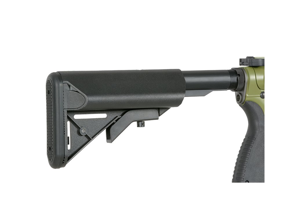 Součástí je nastavitelná 6polohová pažba, která umožňuje přizpůsobení délky podle potřeb uživatele. Ergonomická pistolová rukojeť zajišťuje pohodlný úchop a lepší kontrolu při střelbě. Zbraň je doplněna o licencovaný tlumič Noveske “Flaming Pig”.