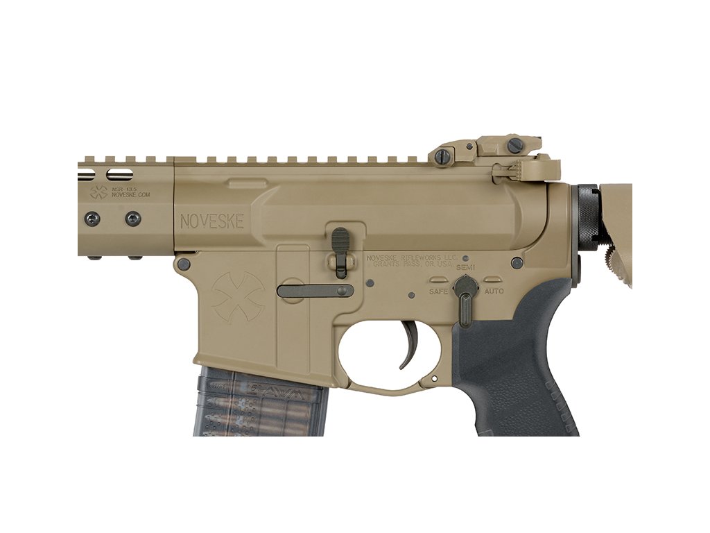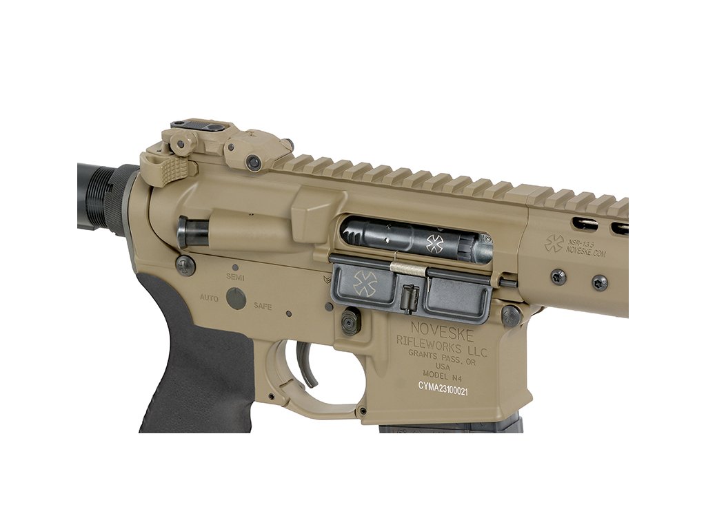 Airsoftová zbraň je vyrobena z kovu, což zaručuje vysokou odolnost i při intenzivním používání. Předpažbí Noveske NSR 13.7" s montážním systémem M-LOK umožňuje snadnou instalaci široké škály příslušenství. Horní lišta RIS / Picatinny je určena pro montáž optiky, mířidel, svítilen a dalšího taktického vybavení.