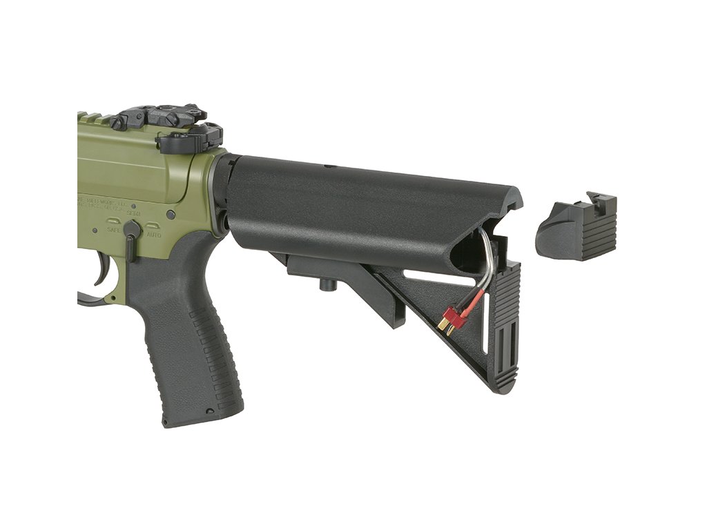 Airsoftová zbraň je osazena výkonným neodymovým motorkem High Torque, který zajišťuje rychlou odezvu spouště, stabilní chod a spolehlivý výkon i při vysoké kadenci.