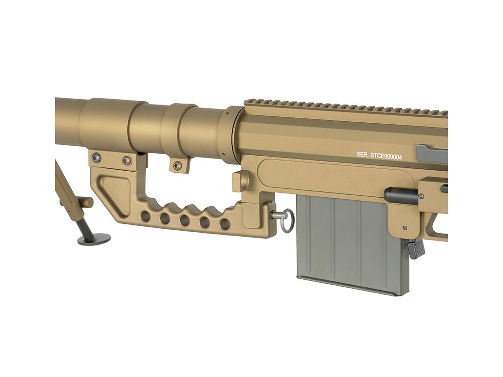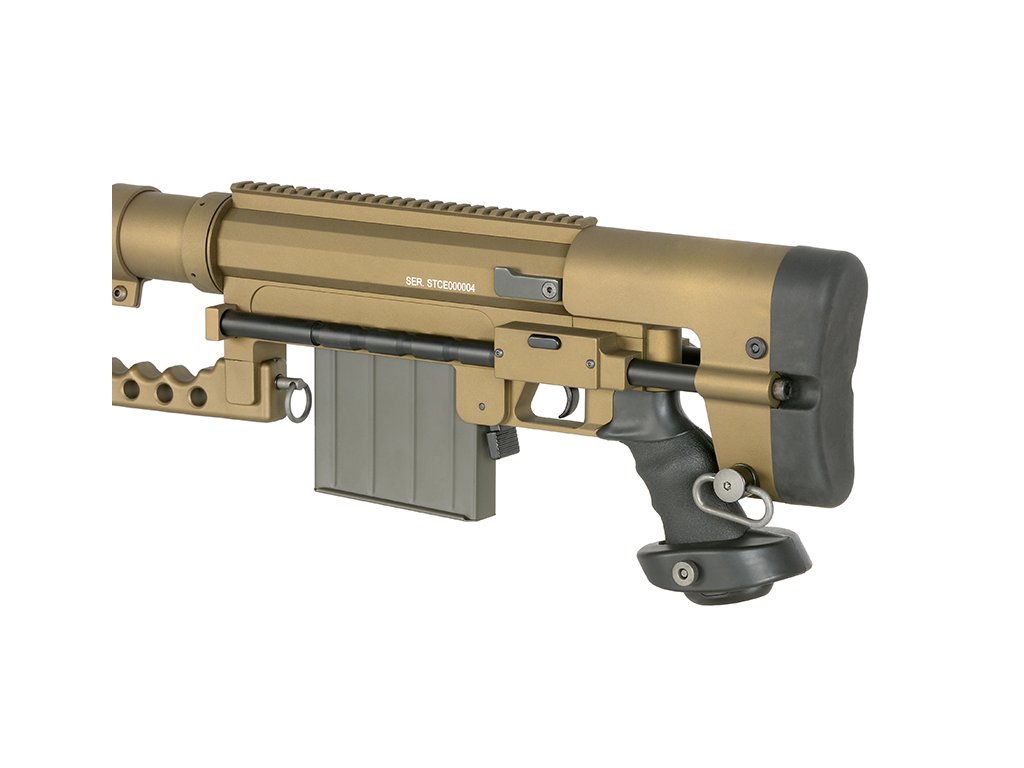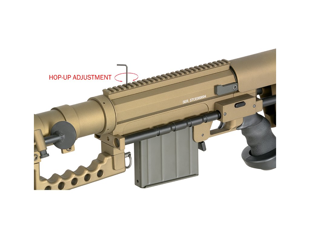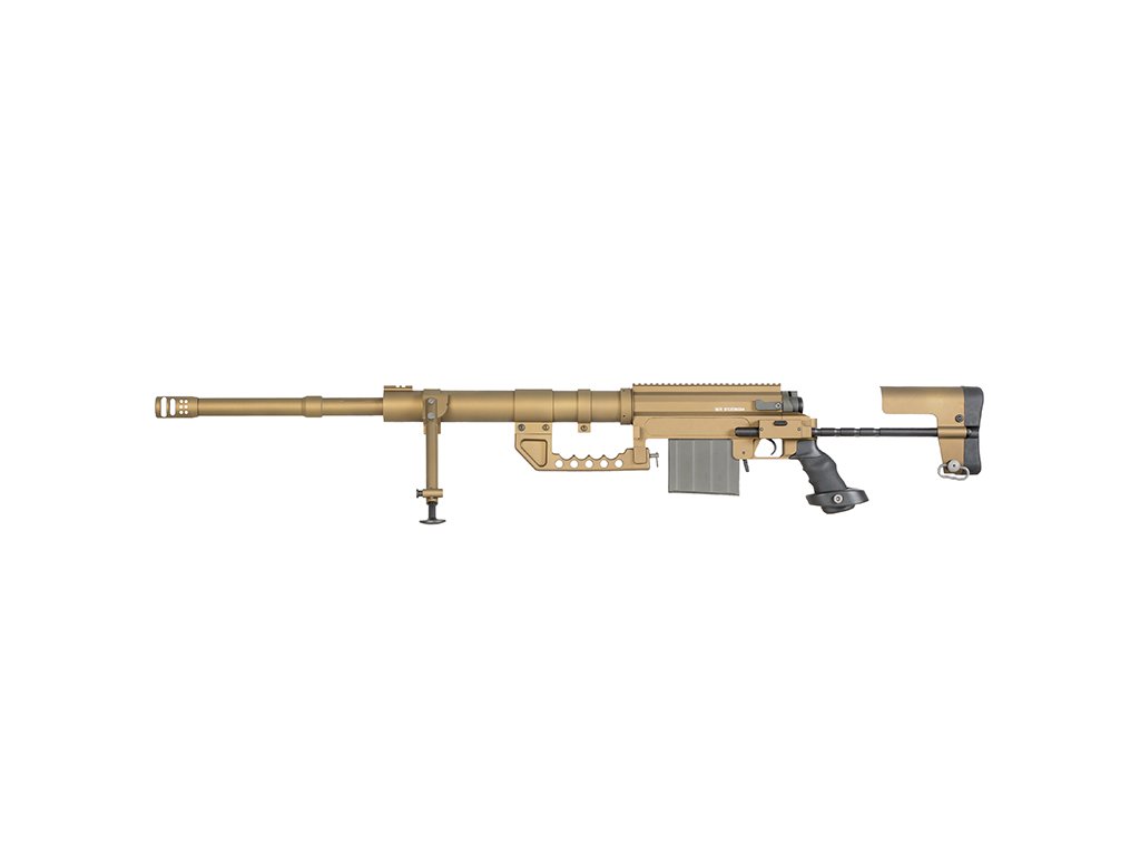 Airsoftová manuální odstřelovací puška, replika ST200, úsťová rychlost až 380 FPS, váha 7010 g, délka 141 cm, zásobník na 60 BB
