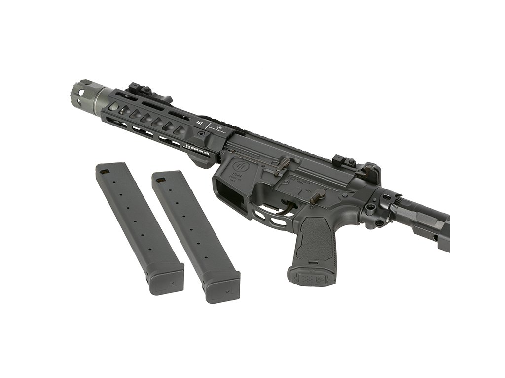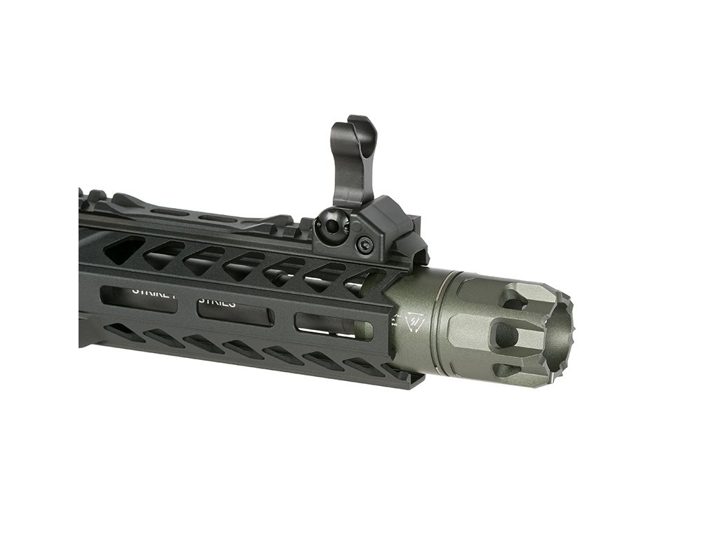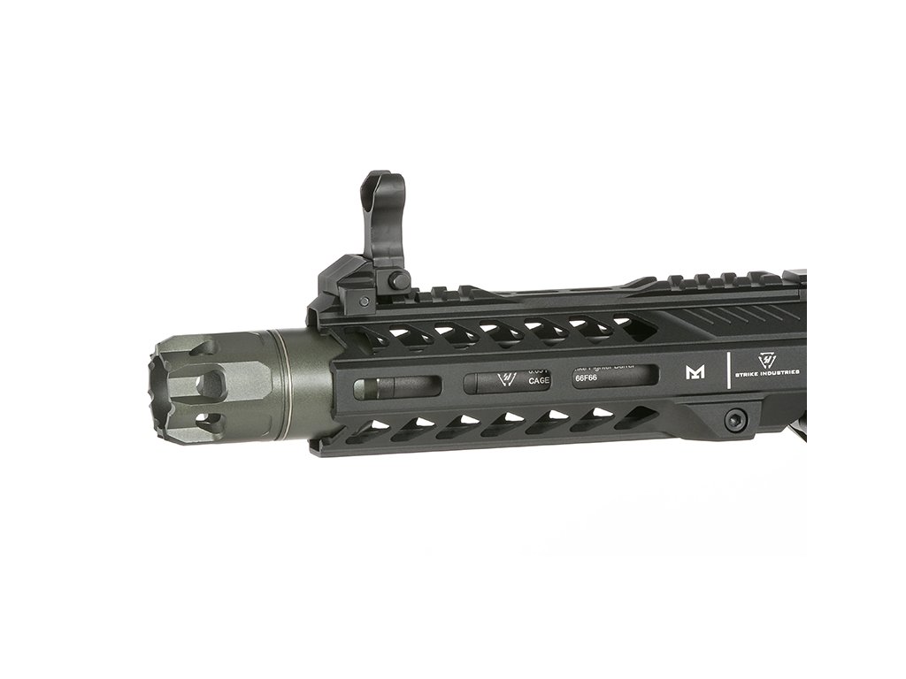 Tělo airsoftové zbraně je vyrobeno z CNC obráběného hliníku, který zaručuje vysokou pevnost, přesné zpracování a dlouhou životnost i při náročném používání. Hliníkové předpažbí Strike Industries CQB M-LOK umožňuje montáž taktického příslušenství, jako jsou rukojeti, svítilny nebo lasery, a poskytuje široké možnosti individualizace.