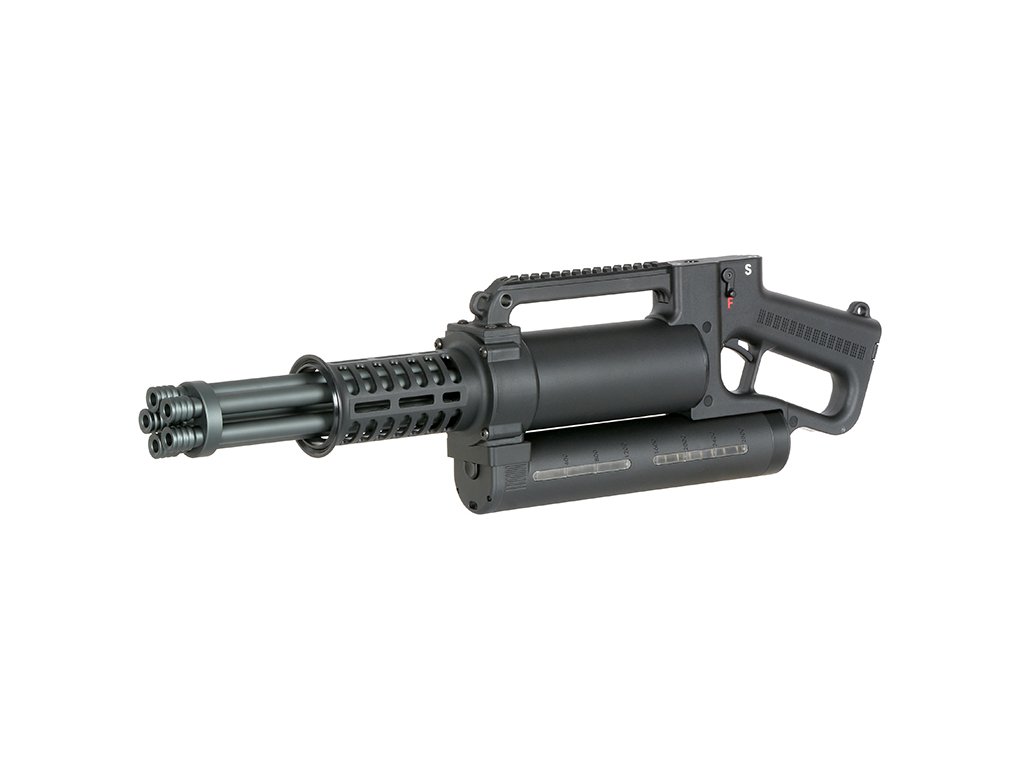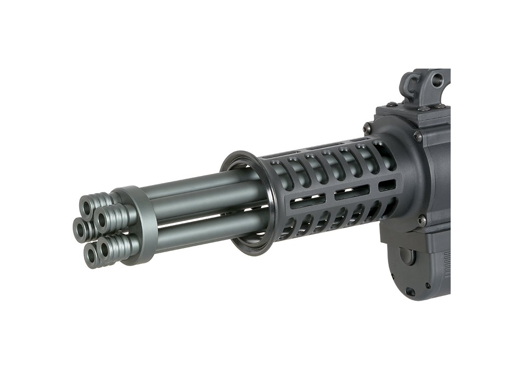 Airsoftová elektrická zbraň, replika podle minigun M61 vulcan, úsťová rychlost až 290 FPS, váha 4800 g, délka 57 cm, zásobník na 2800 BB.