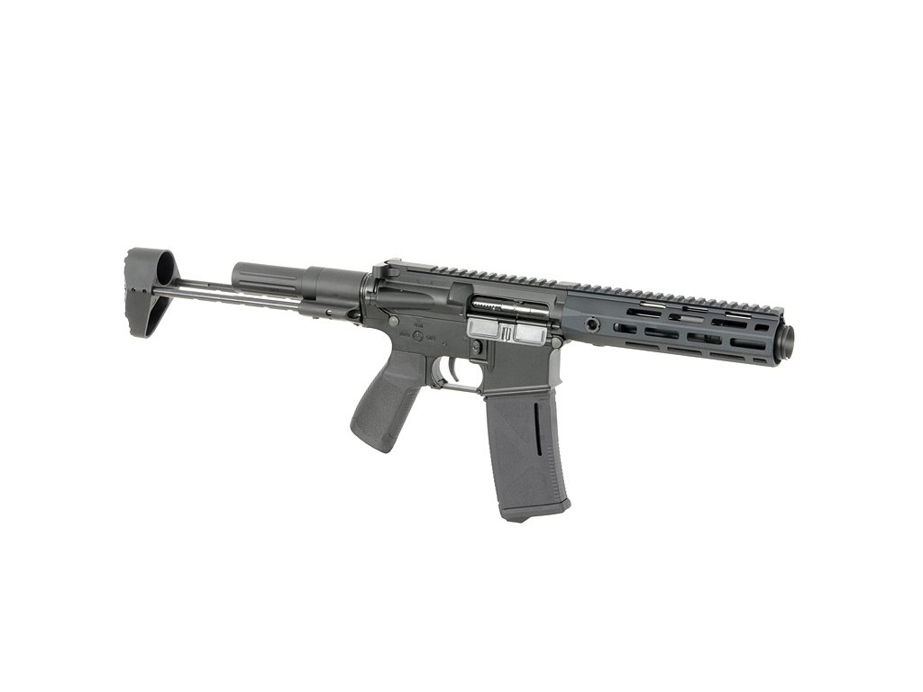 Ergonomicky tvarovaná pažbička se zdrsněným povrchem má možnost výměny zadní i přední části pro docílení pevného a pohodlného úchopu zbraně. Výsuvná šesti polohovatelná kovová pažba s protiskluzovou patku umožňuje ideální nastavení délky . Kovové předpažbí je vybeaveno systémem M-LOK a upevňujícími body pro nosný popruh pomocí systému QD. Horní část má po celé své délce RIS lištu 22mm, na níž lze uchytit sklopná mířidla (která naleznete v balení), nebo kolimátor. Reálnému vzhledu také napomáhá funkční systém Bolt Catch, který při natažení závěru, zachytne závěr v zadní poloze a po stisknutí ocelového Bolt Catche se vrátí zpět. Po odšroubování tlumiče naleznete závit 14mm levotočivý, na který lze namontovat tlumič zvuku, nebo tlumič plamene taktéž se závitem 14mm levotočivým.