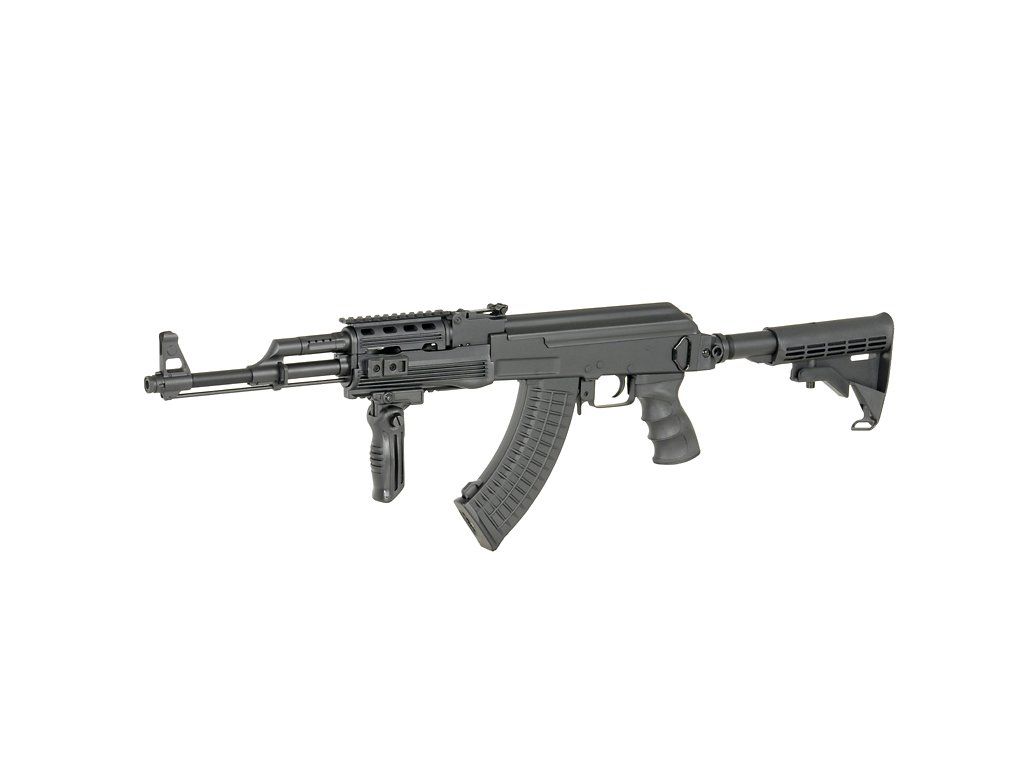 Tato airsoftová replika AK vychází ze standardu TM, což zajišťuje širokou kompatibilitu dílů a jednoduchý upgrade. Díky kompaktní konstrukci a nastavitelné pažbě typu M4 je perfektní pro CQB i venkovní hry.