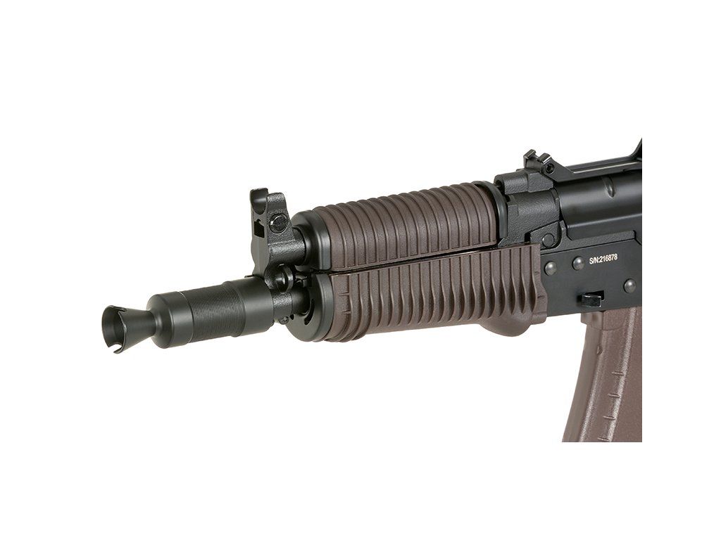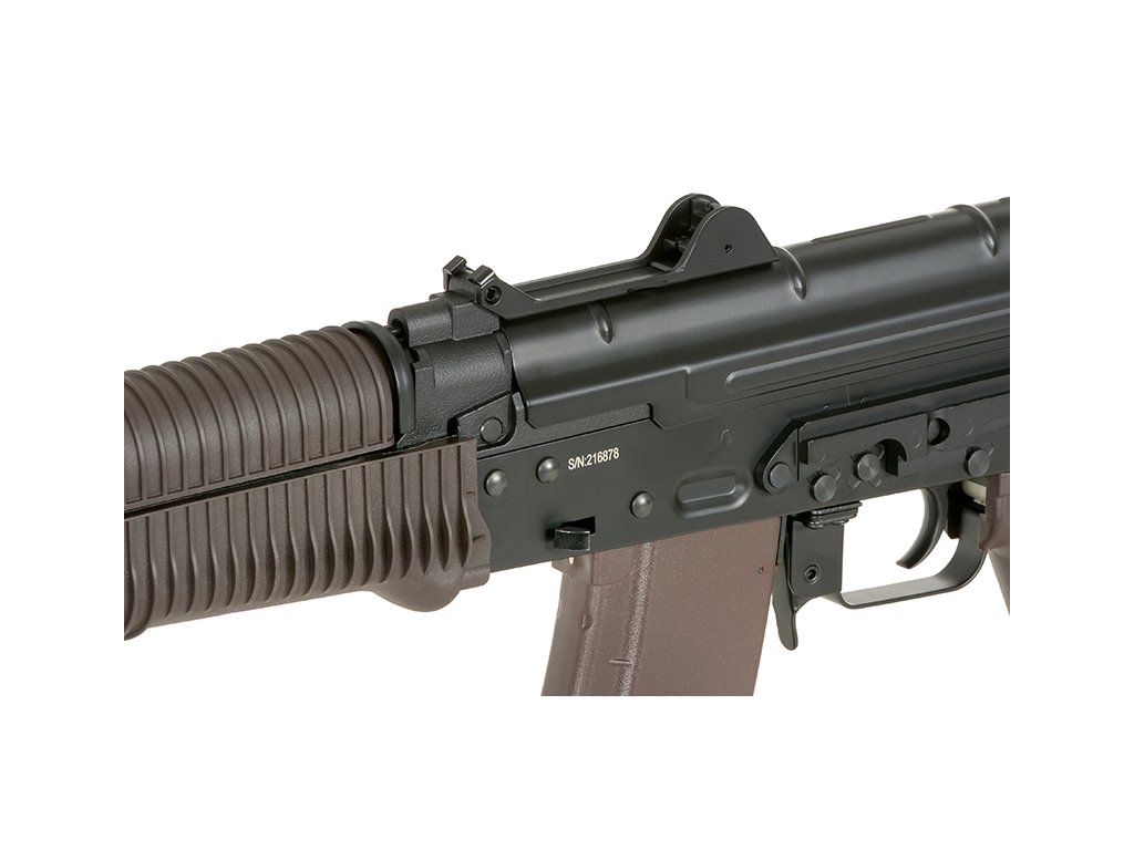 - Kompaktní konstrukce AKS-74U ideální pro CQB a indoor hru