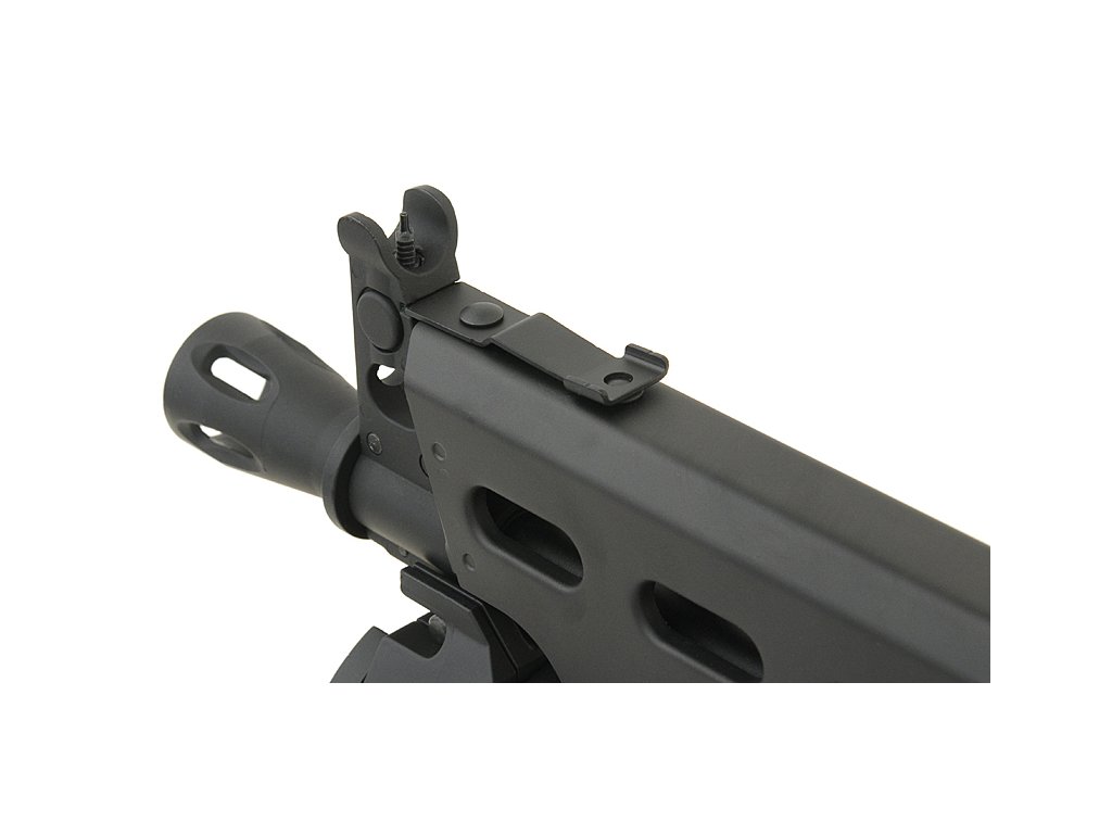 Výhodou této zbraně je spolehlivost, realistický vzhled, kvalitní vnitřní díly, sklopná pažba a kompaktní rozměry CQB.