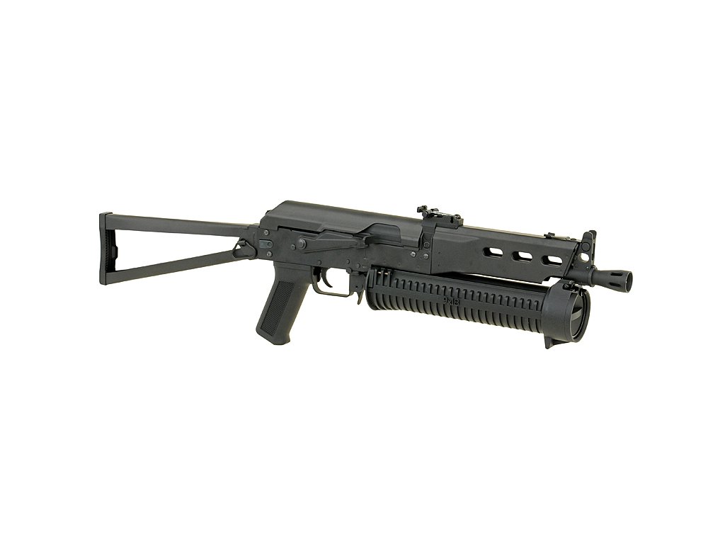Airsoftová elektrická zbraň, replika AK Bizon-2 PP-19, úsťová rychlost až 400 FPS, váha 2960 g, délka 490/740 mm, zásobník na 200 BB