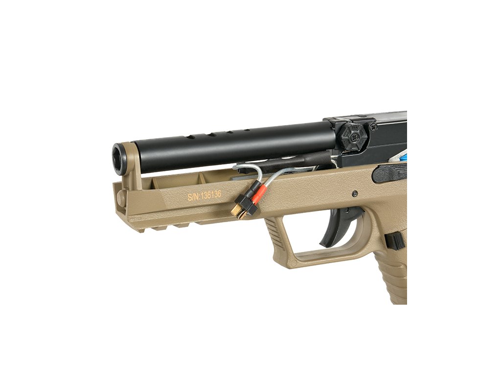 Airsoftová elektrická pistole CM.127S replika pistole Phantom, je nejmodernější AEP vyrobená továrnou CYMA. Tentokrát však místo vzhledu byl kompletně vylepšen vnitřní mechanismus zbraně nazvaný BLUE edition.