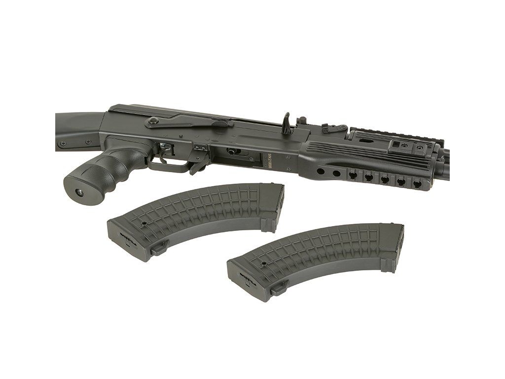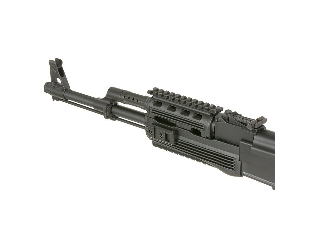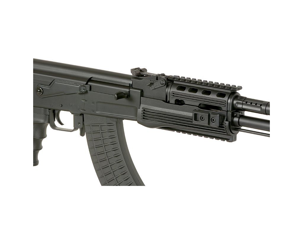 Tato airsoftová zbraň je vybavena polymerovým předpažbím s RIS lištami a horní lištou na plynové trubici, což umožňuje snadnou instalaci taktického příslušenství. Ergonomická pistolová rukojeť zajišťuje pevný úchop a lepší kontrolu při střelbě i pohybu v terénu.