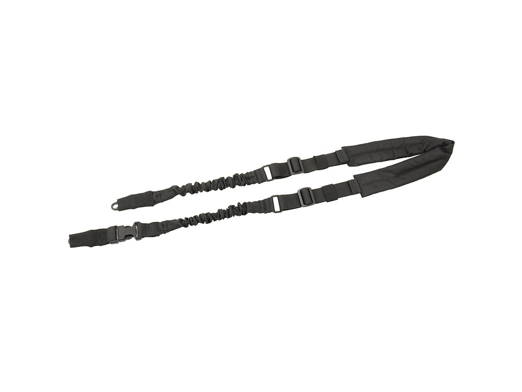 Taktický dvoubodový polstrovaný popruh, který je nastavitelký avybavený rychloodepínatelnými sponami, odpružením bunge a sponami HK.