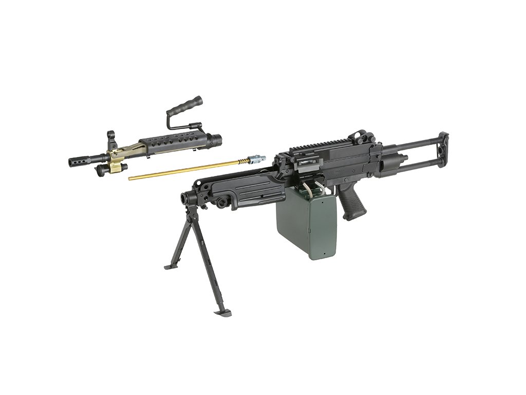 Řada FN M249 PARA je lehký kulomet v kovové variantě. Nízká váha a vysoký výkon díky speciálnímu zesílenému Gearboxu M249. Tento ultralehký kulomet AEG čerpá inspiraci se známého belgického lehkého kulometu, které využívali Spojené Státy, ale také další armády při speciálních operacích po celém světě. M249 PARA je vyrobena společností A&K za spolupráce s CYBERGUN s plnou licencí od FN Herstal díky tomu má tato AEG originální ražení.