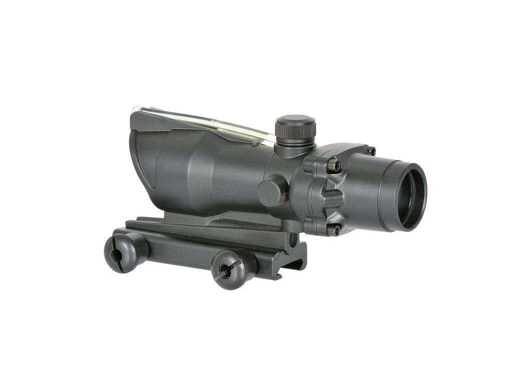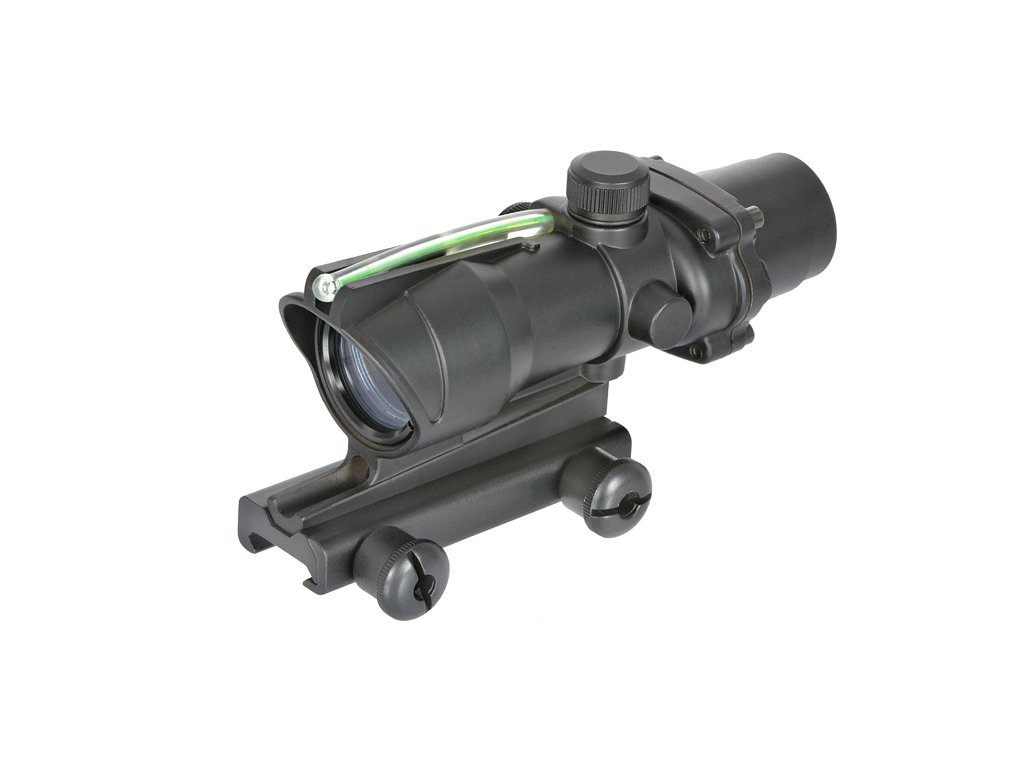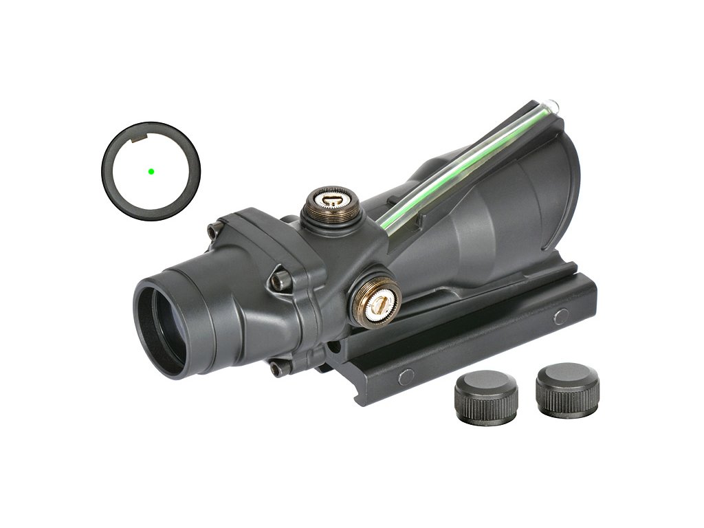 Kolimátor 1x32 se světelným vláknem – zelený bod, montáž na Picatinny a klasický design z 90./00. let.