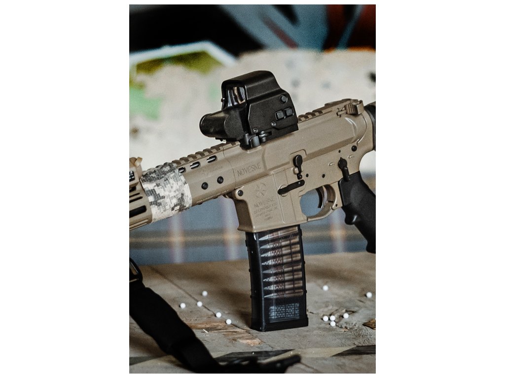 Kolimátor Holo MOD.X pro airsoft hráče, který kombinuje kvalitu a dostupnost. Široké zorné pole umožňuje rychlé a přesné míření s oběma očima otevřenýma, což zvyšuje kontrolu a reakční rychlost. Podsvícený zaměřovací bod ve dvou barvách (červená, zelená) s nastavitelným jasem je ideální pro různé světelné podmínky. Dlouhá výdrž na baterii CR123 a robustní kovová konstrukce zajišťují spolehlivost a odolnost i v náročných podmínkách. Kompatibilní s RIS lištou 22mm. Ovládání z přední strany je jednoduché a intuitivní.