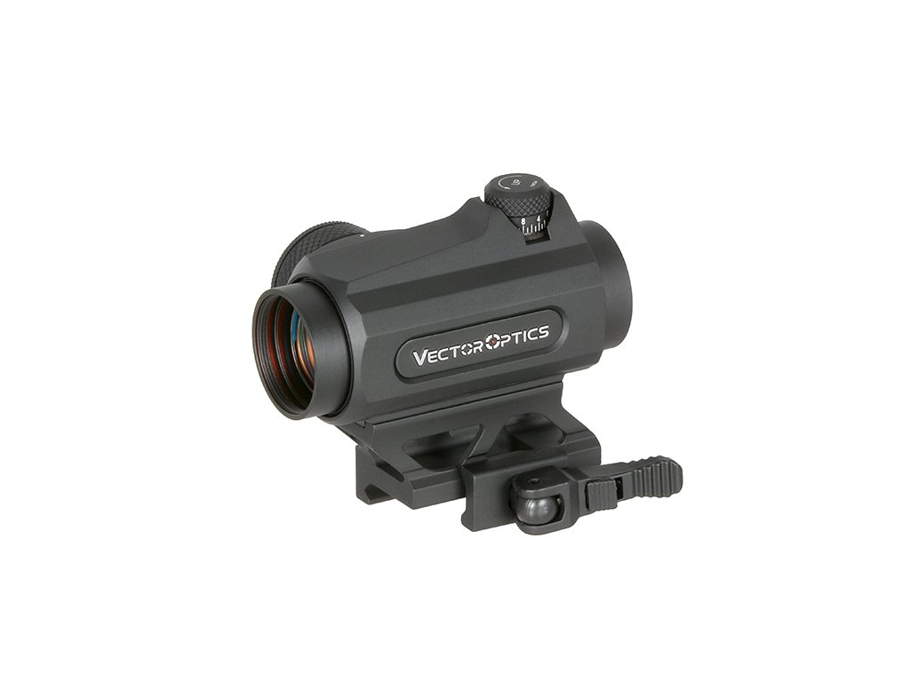 Velmi kvalitní kolimátor od firmy Vector Optic, se záměrným bodem červené barvy, u kterého lze regulovat jas a to až 6 stupni.