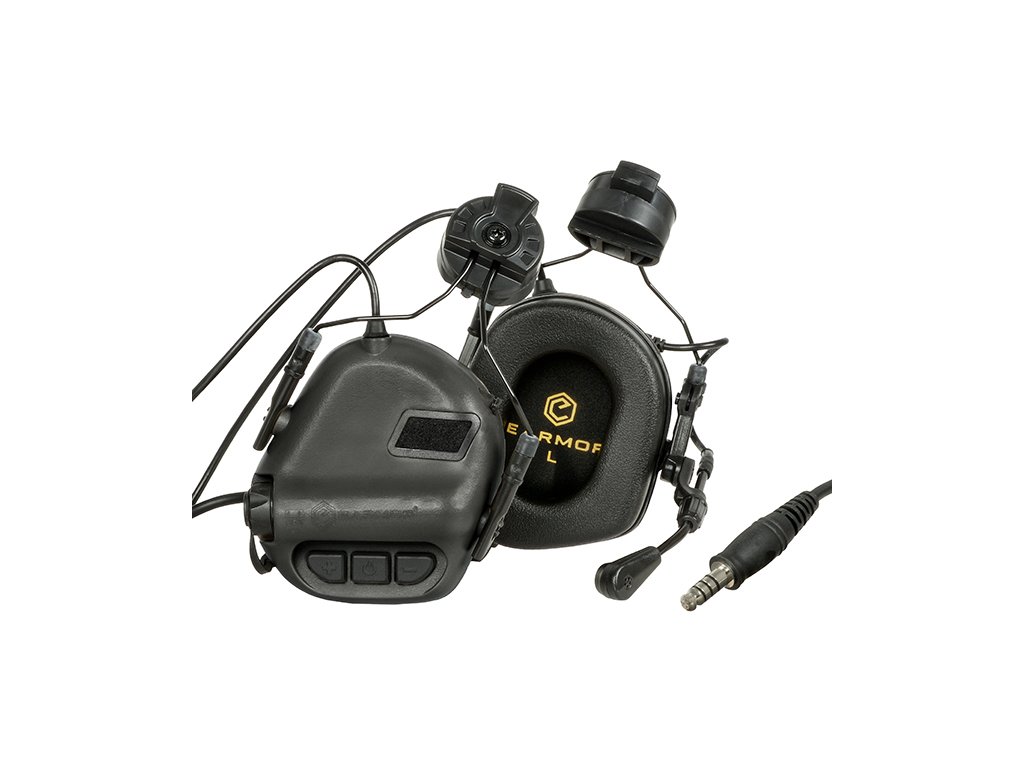 Střelecká sluchátka M32H od firmy EARMOR s aktivní elektronickou ochranou sluchu a mikrofonem jsou ideální komunikační prostředek pro pokročilé taktické operace. Jsou vybaveny konektorem TP-120 U174 Military (NATO STD). Odnímatelný mikrofon umožňuje jeho montáž na pravou či levou stranu dle potřeby.Aktivní elektronická ochrana sníží všechny zvuky převyšující 82dB na bezpečnou poslechovou hlasitost a naopak zvuky pod touto hlasitostí zesílí (možnost nastavení třech úrovní hlasitosti). V praxi to znamená, že i v hlučném prostředí lze slyšet každý zvuk včetně rozhovoru a přitom chránit svůj sluch.Sluchátka mají úzký profil a jejich ergonomie poskytuje pohodlné nošení a zvukovou izolaci. Navíc polykarbonátový 3mm povlak chrání při nárazu.Sluchátka jsou napájena dvěma (2) alkalickými bateriemi AAA (nejsou součásti balení) se kterými vydrží v provozu až 350 hodin. Po čtyřech (4) hodinách se sluchátka automaticky vypnou aby nedošlo k jejich vybití. Upevnění na přilby FAST MT s lištou ARC.