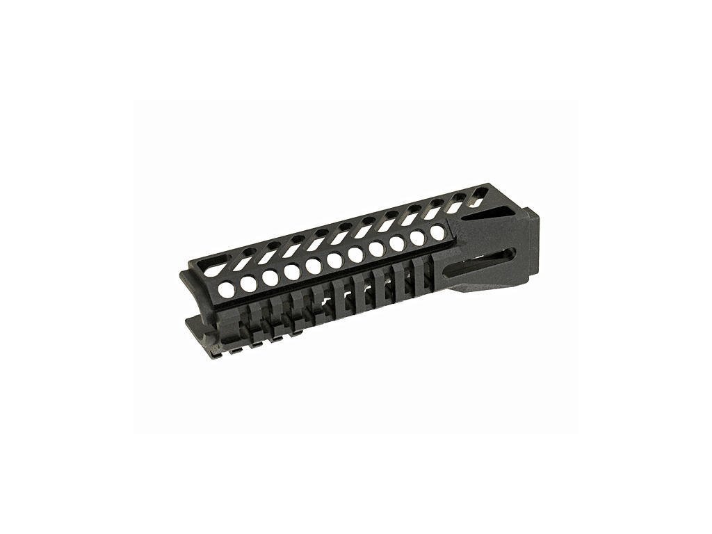 Velmi kvalitně zpracovaný jednolitý díl nízké váhy a moderního vzhledu. Dvě R.I.S. lišty u předpažbí Vám dává varianty připevnění dalších doplňků jako např. laser, svítilnu, ručku. Pasuje na většiny modelů AK, může být potřeba dodatečná úprava. V případě potřeby nás kontaktujete: servis@airsoftmorava.cz