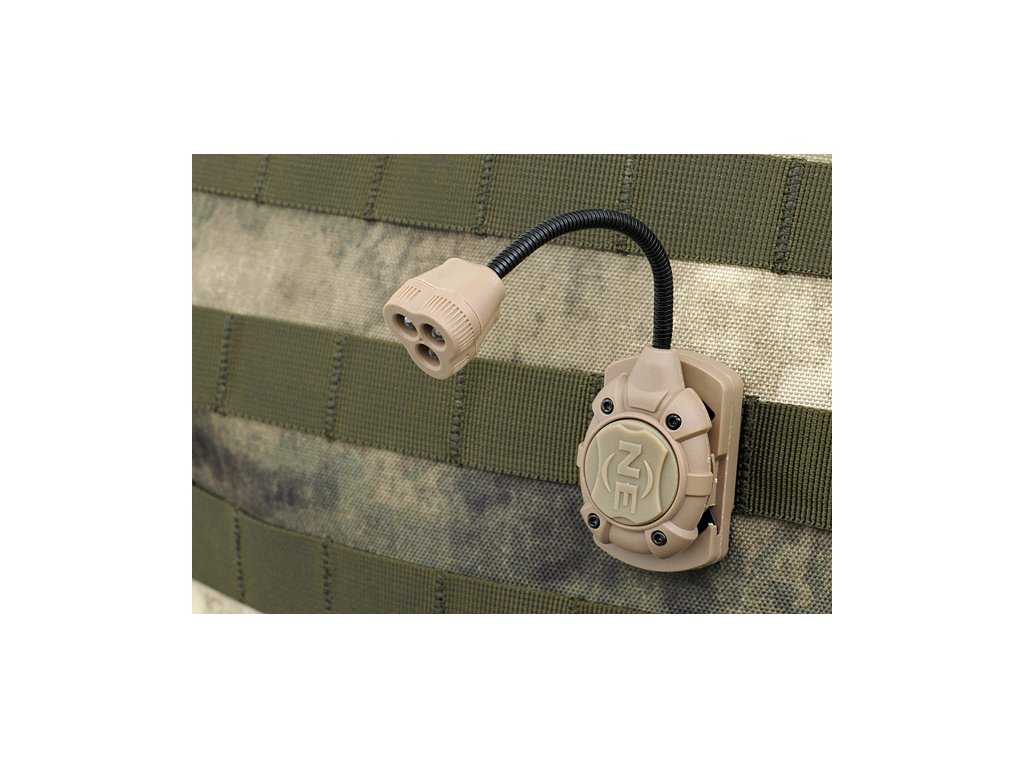 Seznamte se s lehkou modulární svítilnou, její využití je velice všestranné. Samotná svítilna je velmi lehká, váží všeho všudy 20 gramů. Díky čtyřem nástavcům, jí můžete připevnit na svou výstroj snad kamkoliv Vás napadne. Každý z nástavců má rotační hlavici, díky které můžete svítilnou jednoduše natáčet. Lze nastavit dvě úrovně svícení (nízkou, vysokou). Tyto úrovně přepnete jednoduchým dvoj-kliknutím na vypínači. Další skvělou vlastností je tak zvaný "flexibilní husí krk", který je 65 milimetru dlouhý, který umožňuje ještě rychleji změnit směr svitu. Jak už bylo zmiňováno díky čtyřem nástavcům lze svítilnu připevnit na přilby (FAST, MICH), na systém MOLLE, i na RIS lištu 22mm. Tato svítilna by určitě neměla chybět ve Vaší výbavě.
