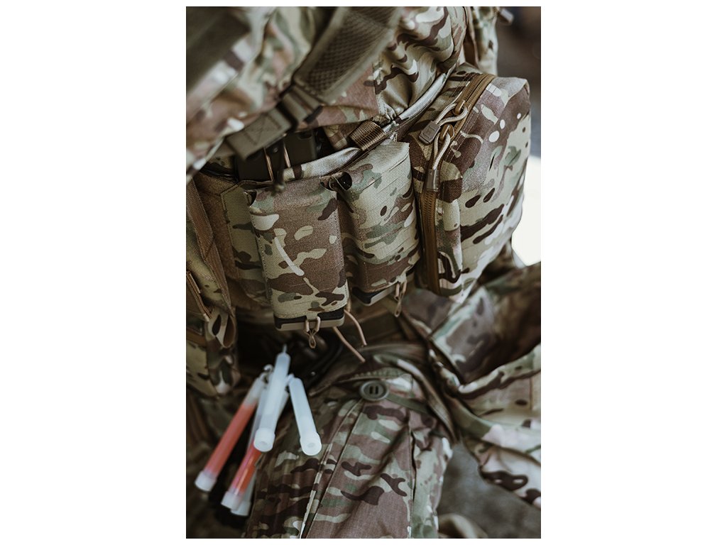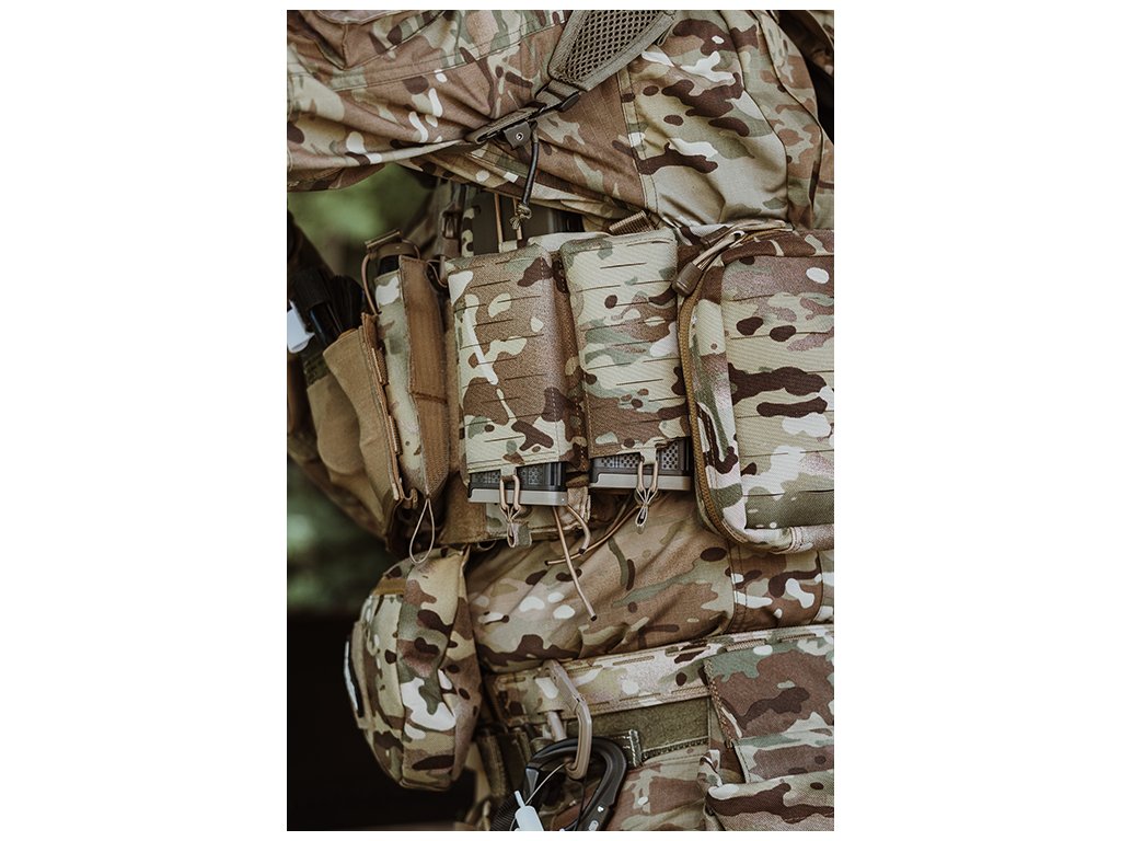 Sumka byla navržena pro rychlý a intuitivní přístup k jednomu zásobníku AK nebo AR15. Díky upevnění pomoci systému MOLLE ji lze snadno uchytit na taktické vesty nebo opasky. Elastický shockcord umožňuje bezpečné zajištění zásobníku a zároveň jeho rychlé vytažení v dynamických situacích. Laserem řezaný montážní systém nabízí možnost rozšíření výbavy o další sumky či jiné prvky, což umožňuje plné přizpůsobení konfigurace vlastním potřebám.