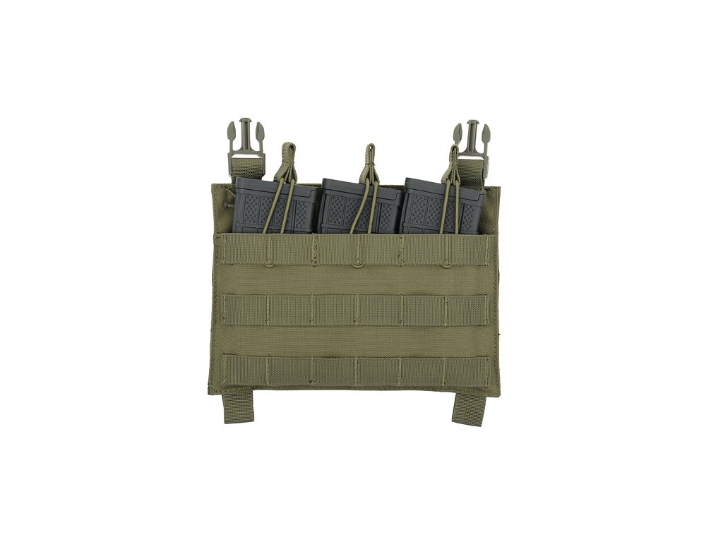 Tato otevřená sumka na tři zásobníky, o rozměrech 5.56 nebo 5.45 a předměty podobných rozměrů, je konstruována tak, aby jste byli schopni co nejrychleji a nejpohodlněji vytáhnout předmět, který potřebujete. Upevnění je pomoci suchého zipu, plus pro zajištění dvě plastové spony.