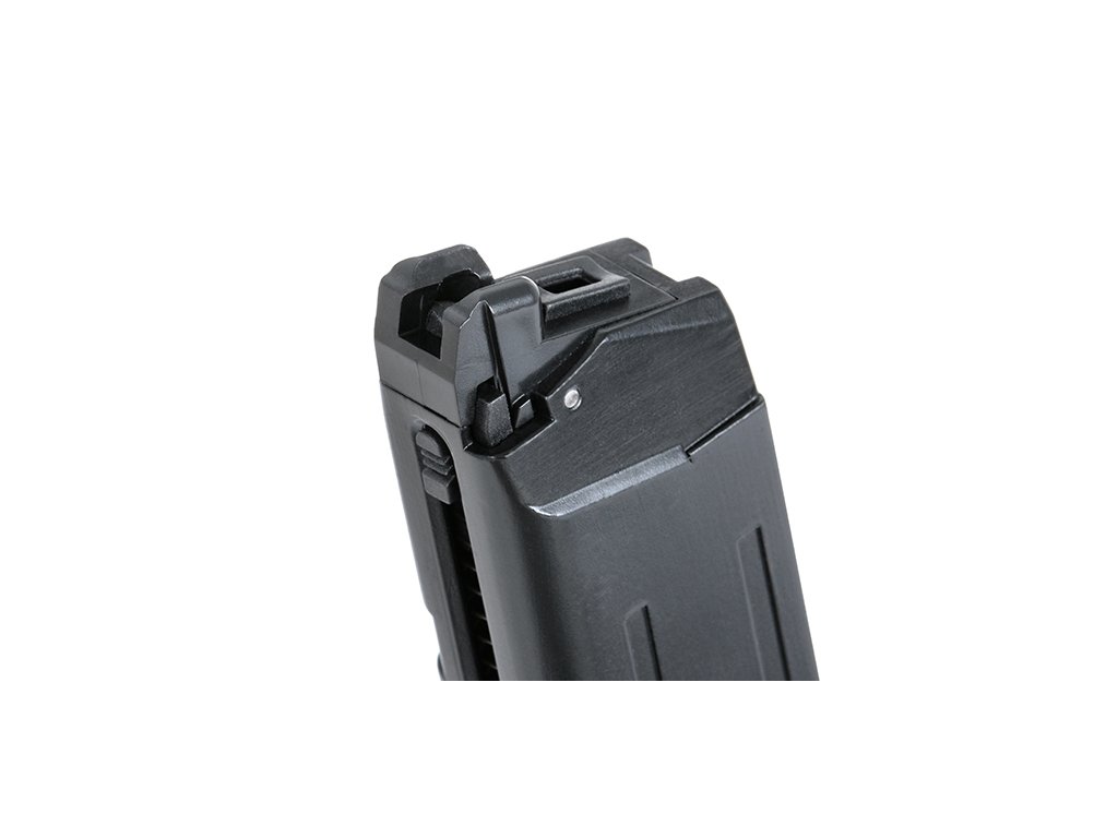 Tento plynový zásobník do zbraní série G, je považován za nejlepší "airsoftový zásobník" na světě. Zásobník pasuje do airsoftových zbraní G17, G18, Dragonfly, Shark, ACP, Scorpion, Hornet, Spyder, Z1... výrobců APS, Marui, WE, ARMY, KJW...