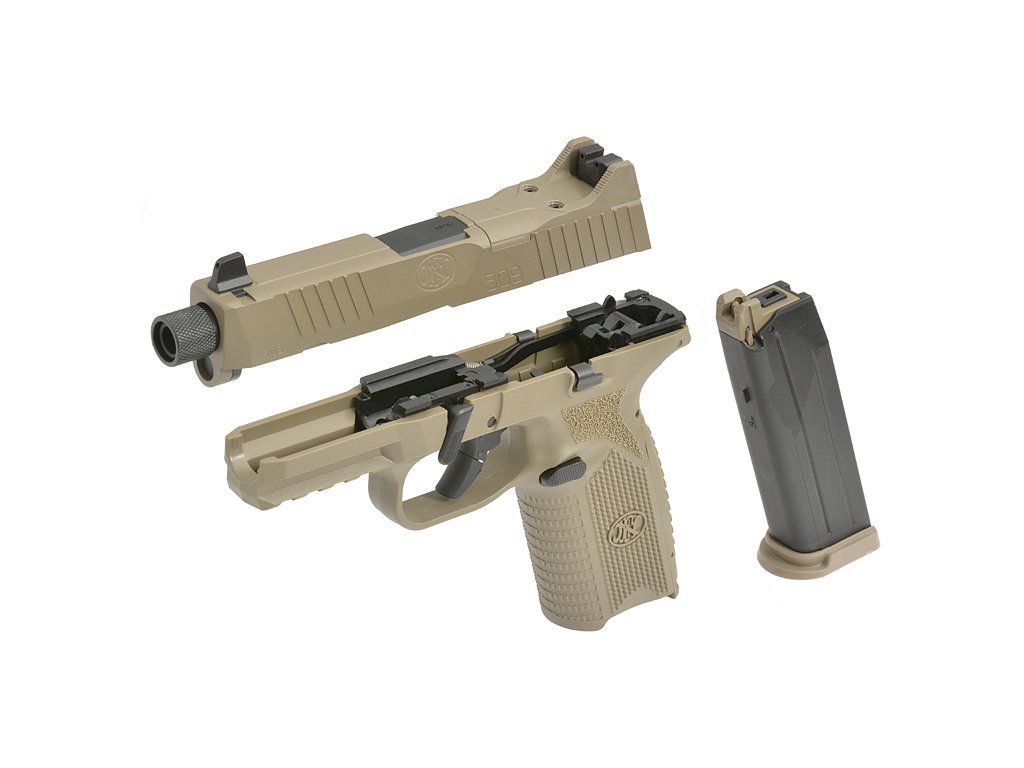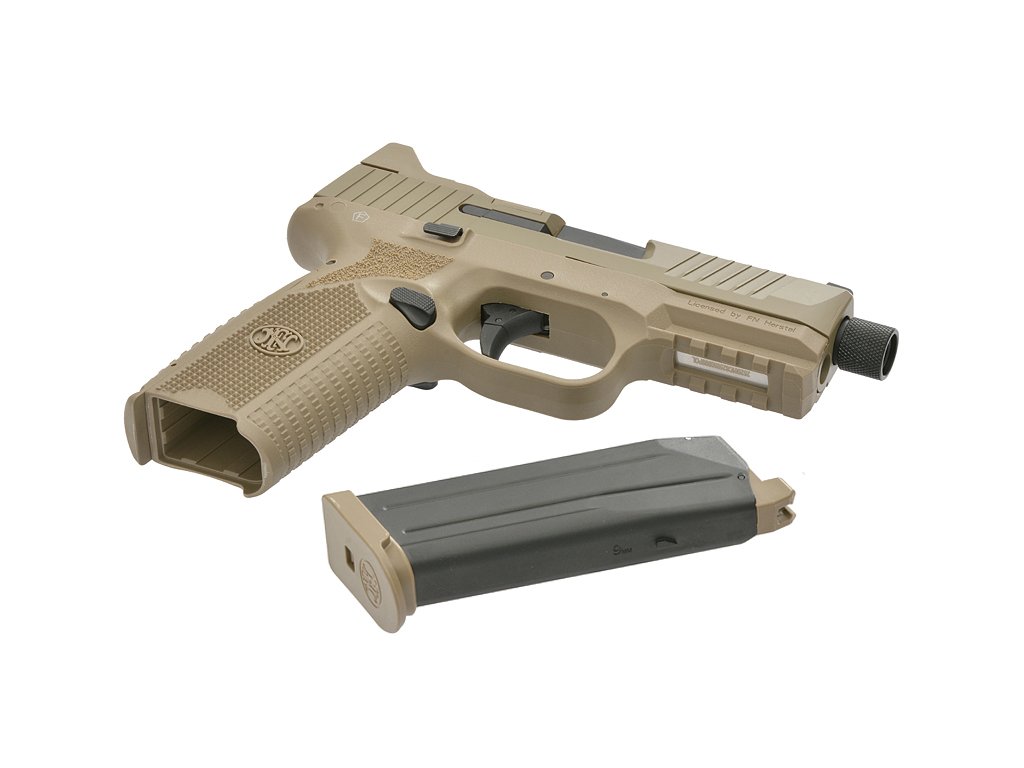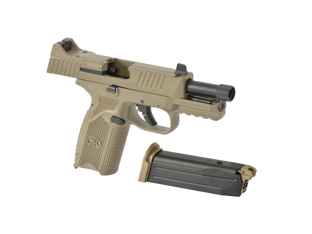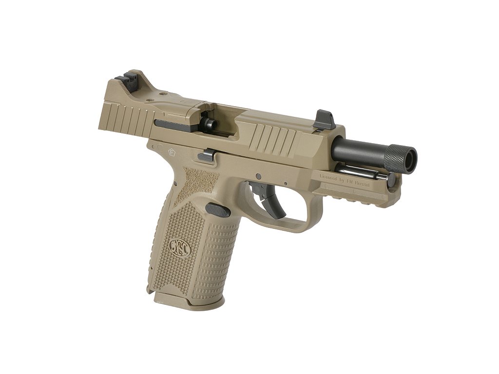 Luxusní airsoftová plynová pistole GBB v pískovém provedení, vytvořená společností Double Eagle na licenci FN Herstal. Tento model kombinuje realistické provedení s originálními popisky FN, funkčnost a nabízí variabilitu. Závěr je přizpůsobený pro montáž kolimátoru typu RMR. Zvýšená mířidla, oboustranné ovládací prvky a ergonomická rukojeť s vyměnitelnými nástavci, se dokonale přizpůsobí uživateli. Vnitřek zbraně skrývá zesílený mechanismus založený na ocelových vnitřních dílech a dvojitém systému vodících pružin, což zajišťuje plynulý chod a vysokou životnost i při intenzivním používání.
