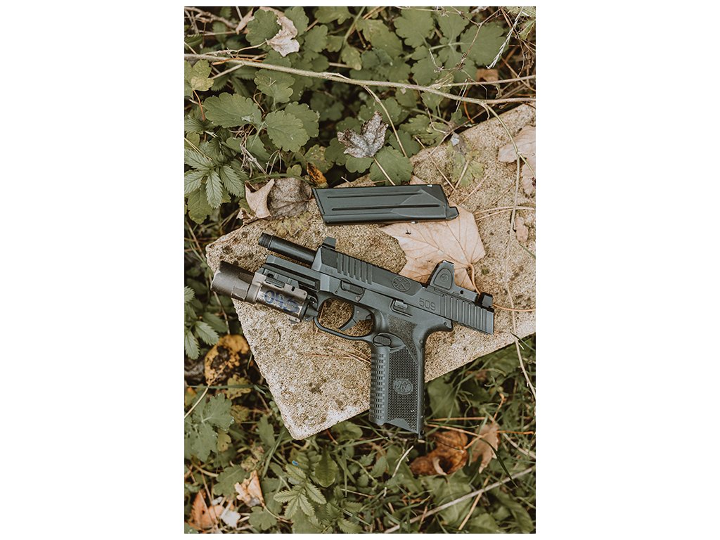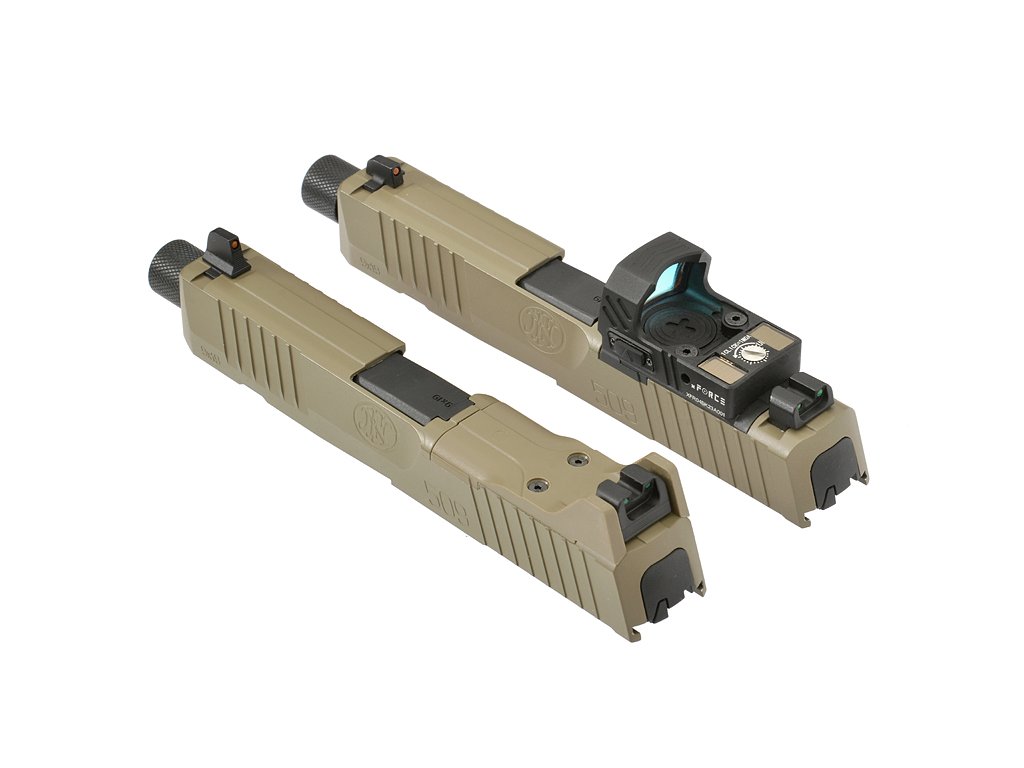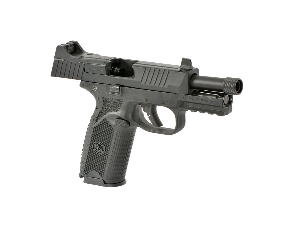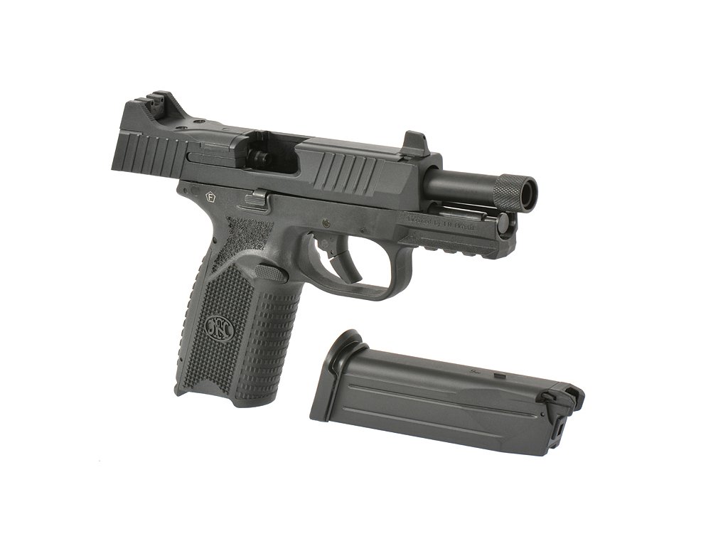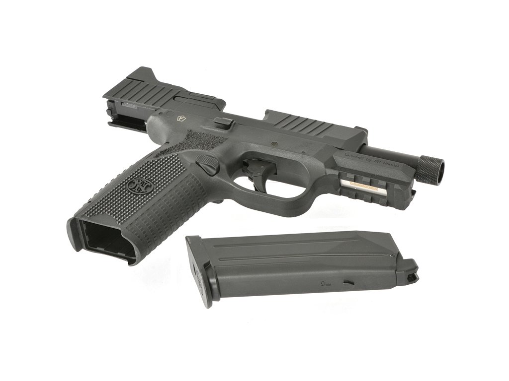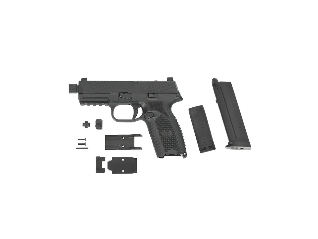 Luxusní airsoftová plynová pistole GBB, vytvořená společností Double Eagle na licenci FN Herstal. Tento model kombinuje realistické provedení s originálními popisky FN, funkčnost a nabízí variabilitu. Závěr je přizpůsobený pro montáž kolimátoru typu RMR. Zvýšená mířidla, oboustranné ovládací prvky a ergonomická rukojeť s vyměnitelnými nástavci, se dokonale přizpůsobí uživateli. Vnitřek zbraně skrývá zesílený mechanismus založený na ocelových vnitřních dílech a dvojitém systému vodících pružin, což zajišťuje plynulý chod a vysokou životnost i při intenzivním používání.