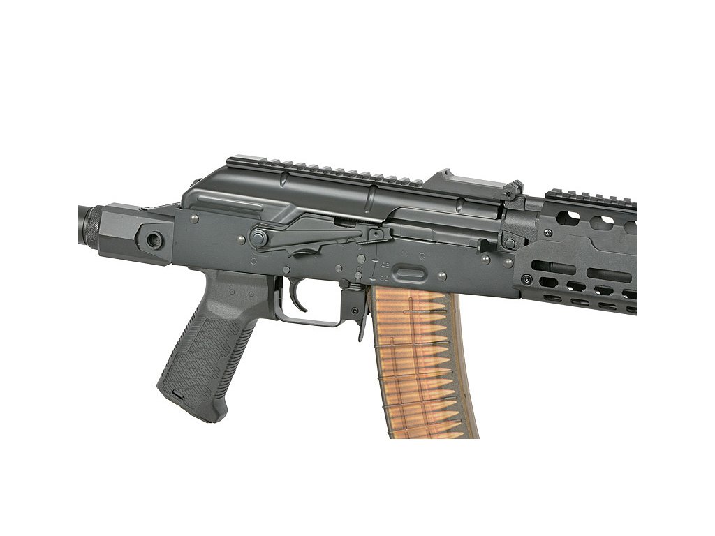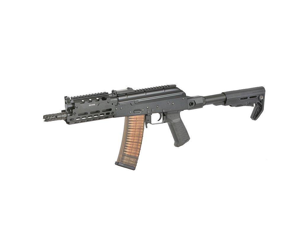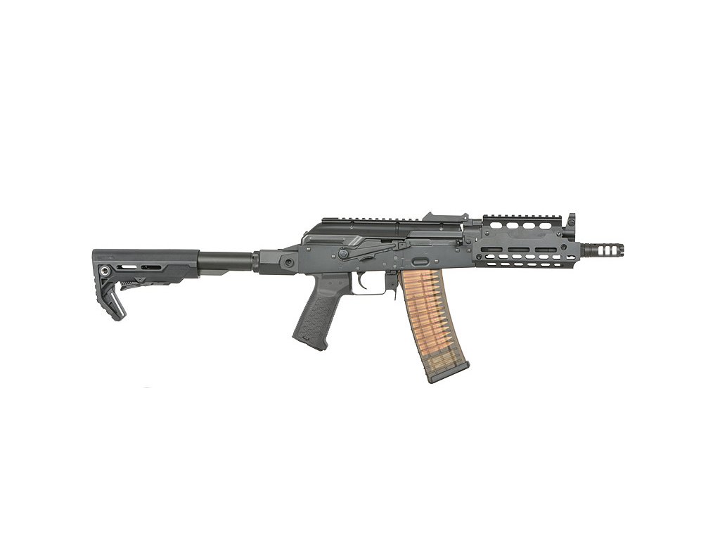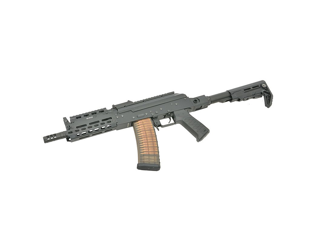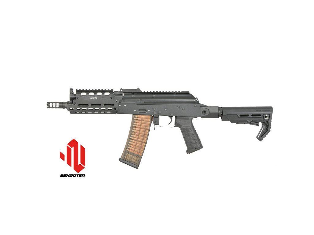 Airsoftová zbraň AKS-74U je zmenšená verze sovětské karabiny AK-74, která kombinuje klasický design s moderním příslušenstvím od Strike Industries. Vybavena licencovanými prvky, jako je tělo zbraně, pažba Strike MOD1 a trn pažby AR-15, zajišťuje výjimečnou funkčnost a estetiku. Uvnitř repliky se nachází systém MOSFET Eshooter V3, který zajišťuje spolehlivost, rychlou odezvu a možnost změny režimů střelby, jako je burst nebo binary, což z ní činí ideální volbu pro náročnější hráče.