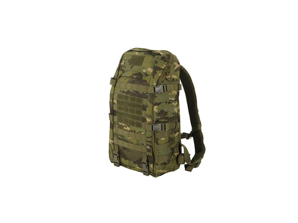 Váha: 2280g Materiál: 1000D polyester Objem: 20l Batoh vyroben z nepromokavého 1000D polyesteru, je z vnější části vybaven systémem MOLLE. Ten dává prostoru pro upevnění dalších sumek a doplňků k tomuto batohu. Vyztužení zadní a bočních stěn, zajišťuje v