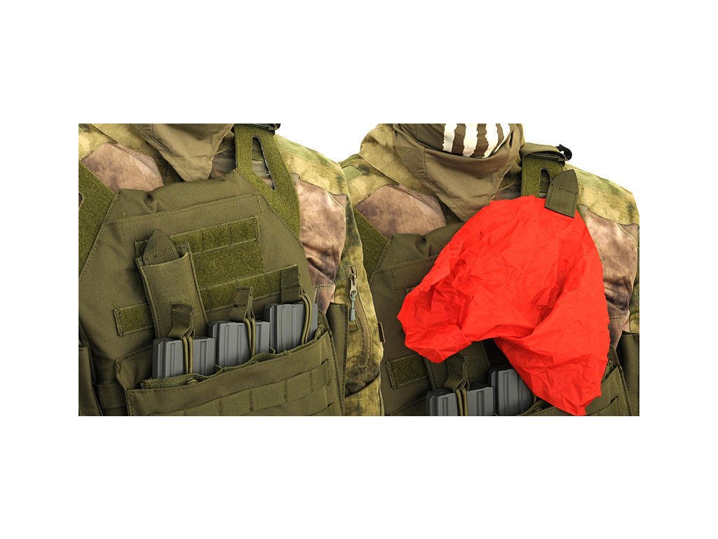 Váha: 35 g Materiál: polyester 1000D, elastická guma Červený šátek oznamující zásah, zabudovaný uvnitř elastické sumky je možno upevnit na přilbu nebo vestu pomocí systému MOLLE.