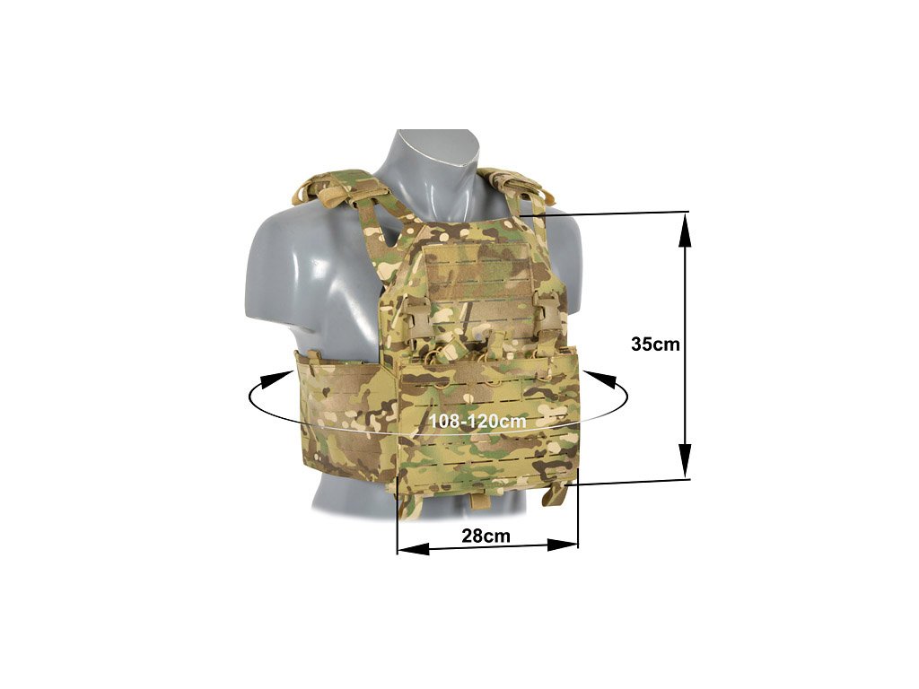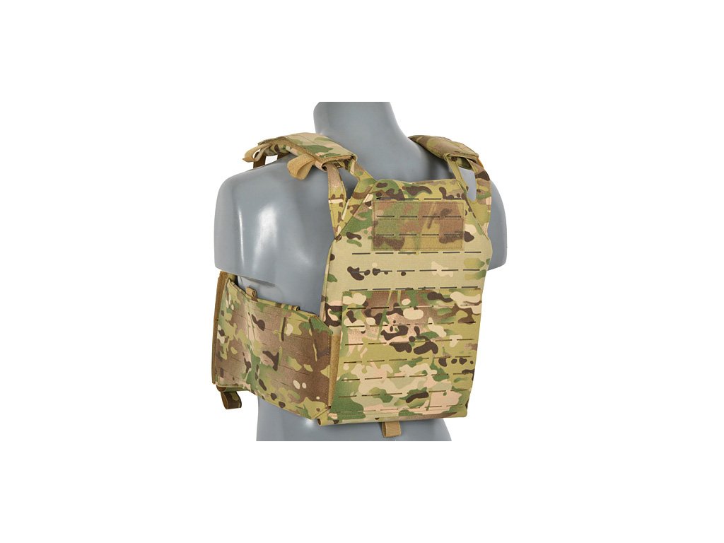 Nastavitelné boční panely Laser-Cut umožňují připevnění dalšího taktického vybavení, jako jsou sumky na zásobníky, radiostanici apod. Boční panel lze navíc otevřít a vložit doplňkovou boční ochranu.