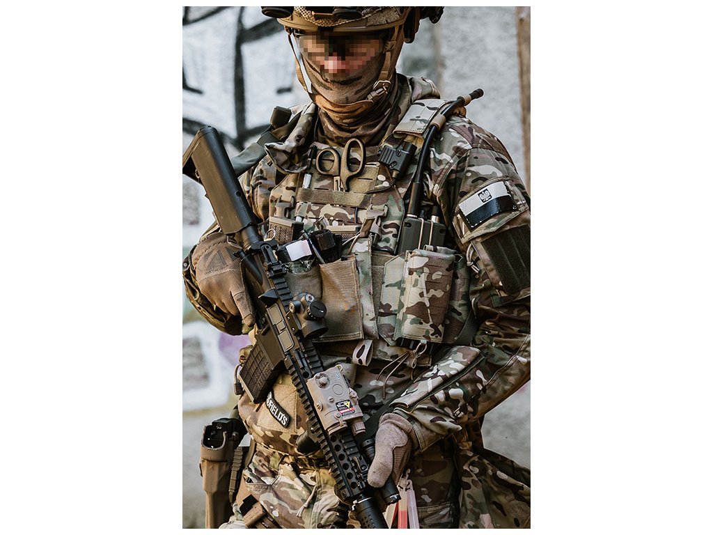 Součástí balení je přední panel Buckle-Up se třemi integrovanými sumkami na zásobníky typu AR/AK, takže se můžeš ihned pustit do akce bez nutnosti dalších nákladů.