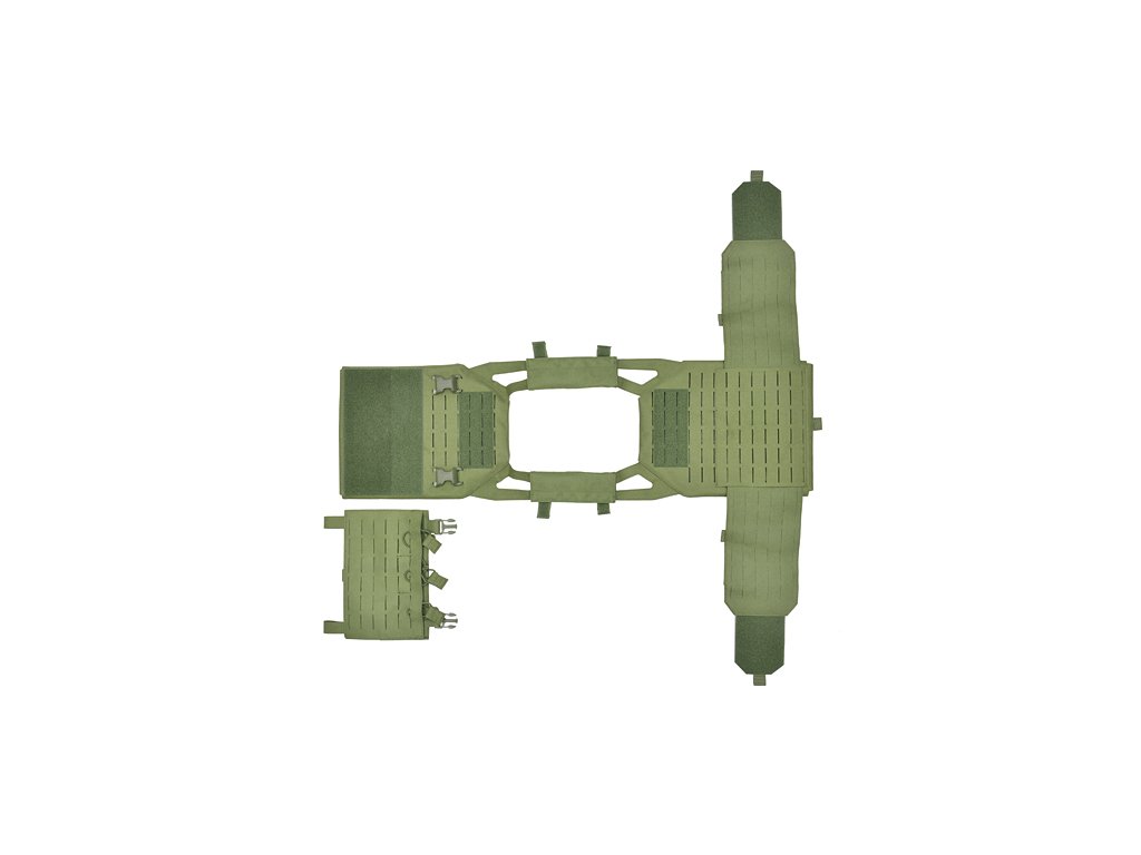 Díky precizním výřezům získává větší montážní plochu bez nutnosti přidávání dalších vrstev materiálu – výsledkem je lehčí, odolnější vesta, méně náchylná k poškození než klasické systémy MOLLE.