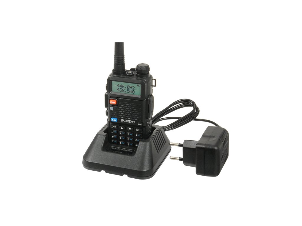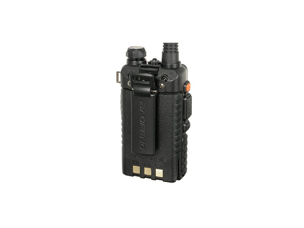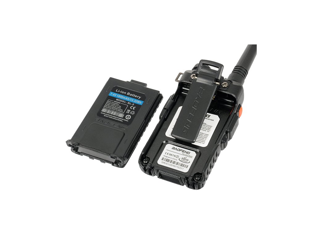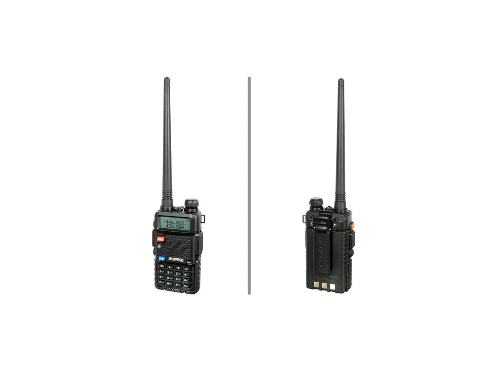 Vysílačka Baofeng UV-5R je vyrobena z velmi odolného plastu, tlačítka jsou pokryté krytkami z gumy, kvůli ochrany proti mechanickému opotřebení. Má 128 paměťových kanálů a je vybavena barevně podsvíceným LCD displejem.