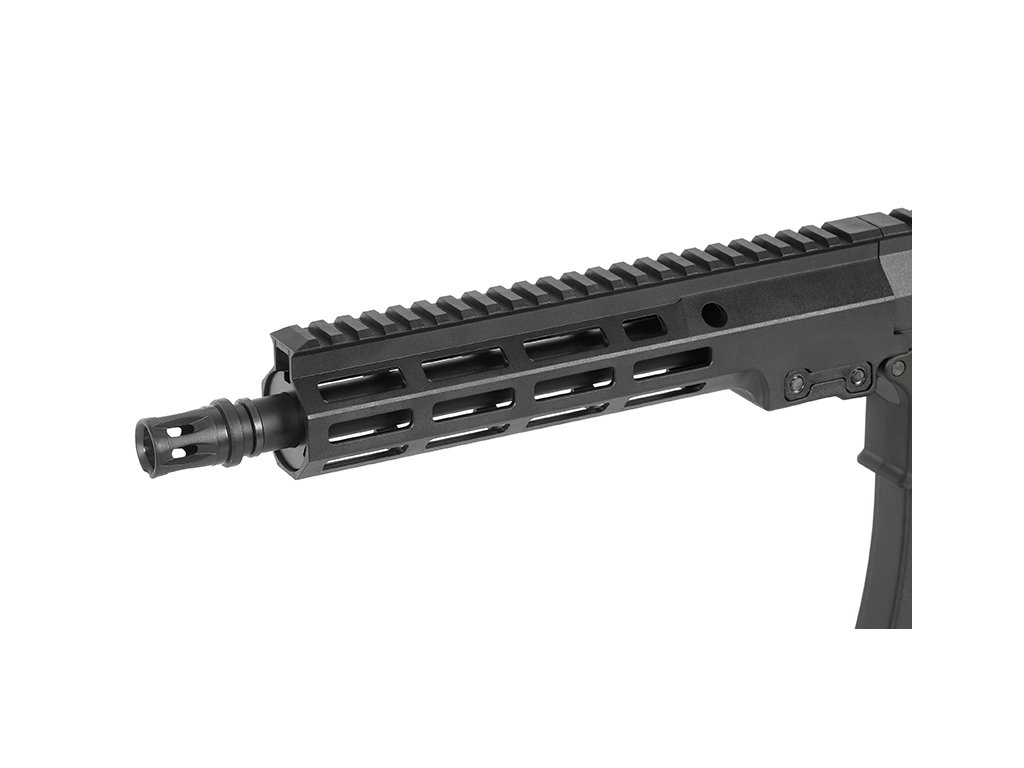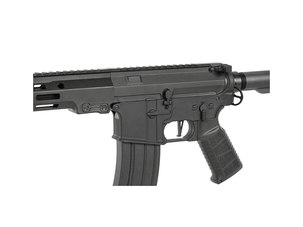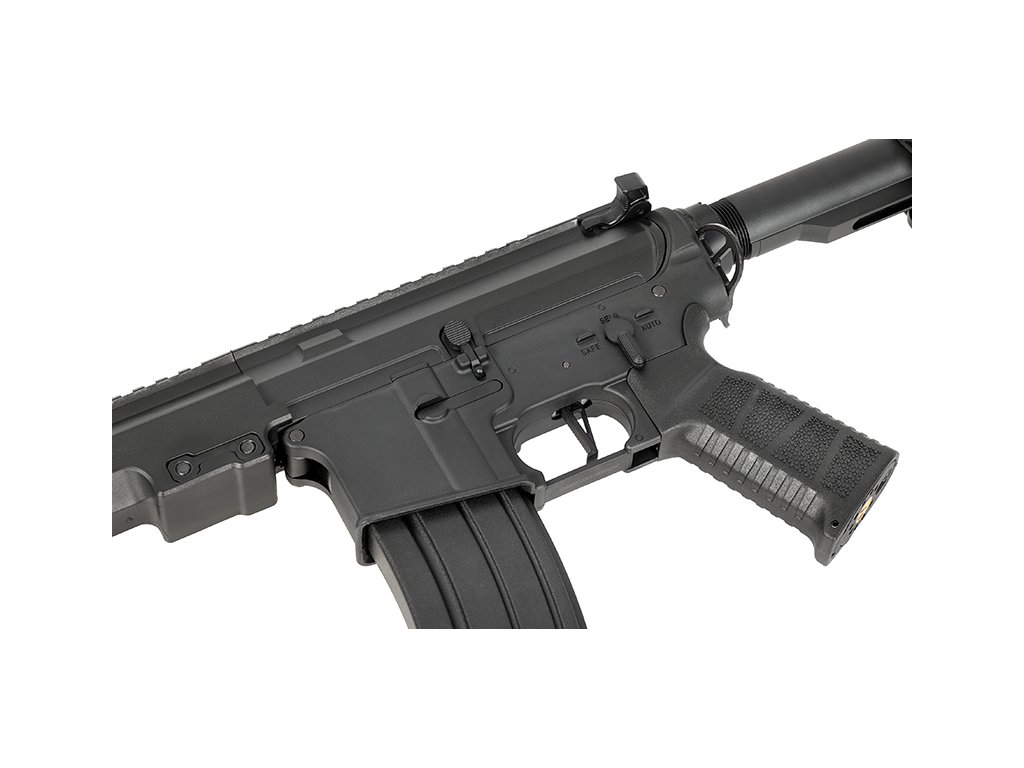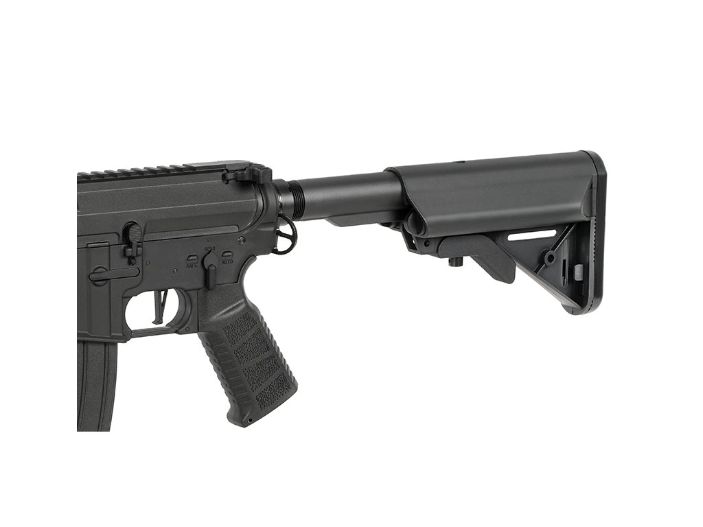 Tato AEG disponuje horní RIS lištou 22mm pro montáž optiky a M-LOCK předpažbím, kam lze přidat taktická příslušenství – jako jsou přední rukojeti, svítilny nebo lasery. Ergonomická pistolová rukojeť zajišťuje pohodlný a jistý úchop. Pažba má 6-polohovou regulaci délky, což umožňuje přizpůsobit zbraň různým postavám i herním situacím.